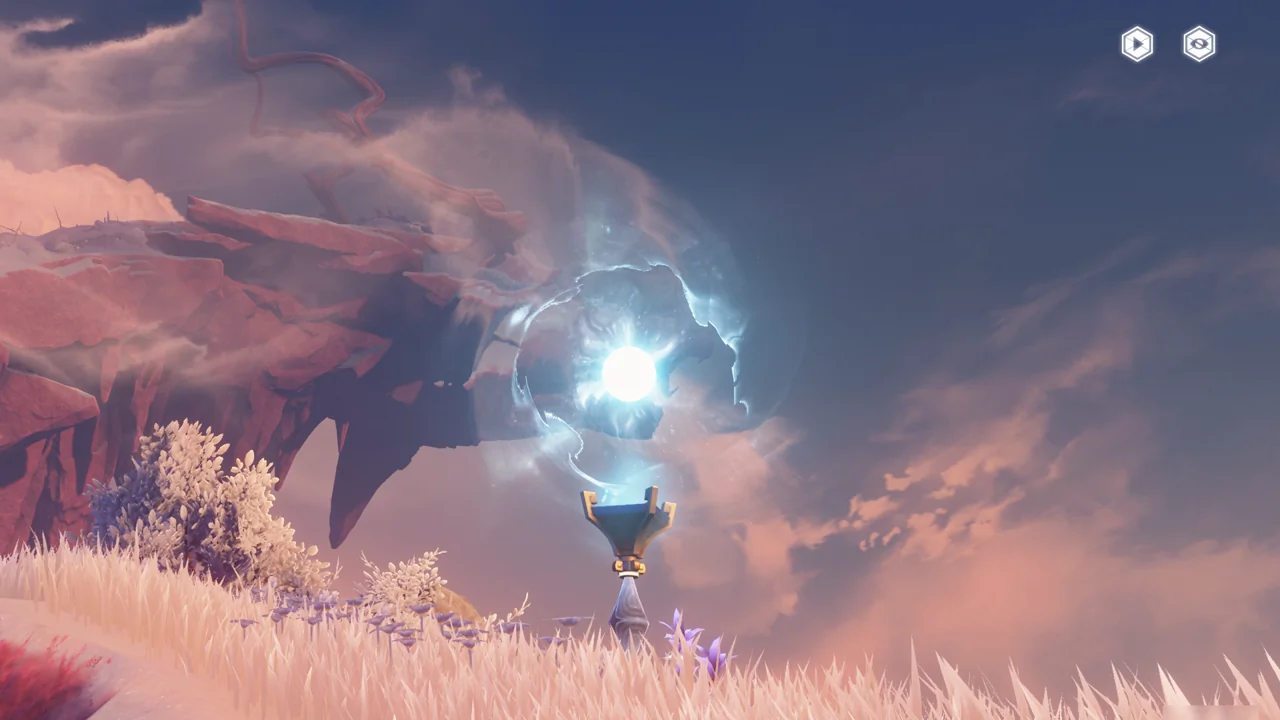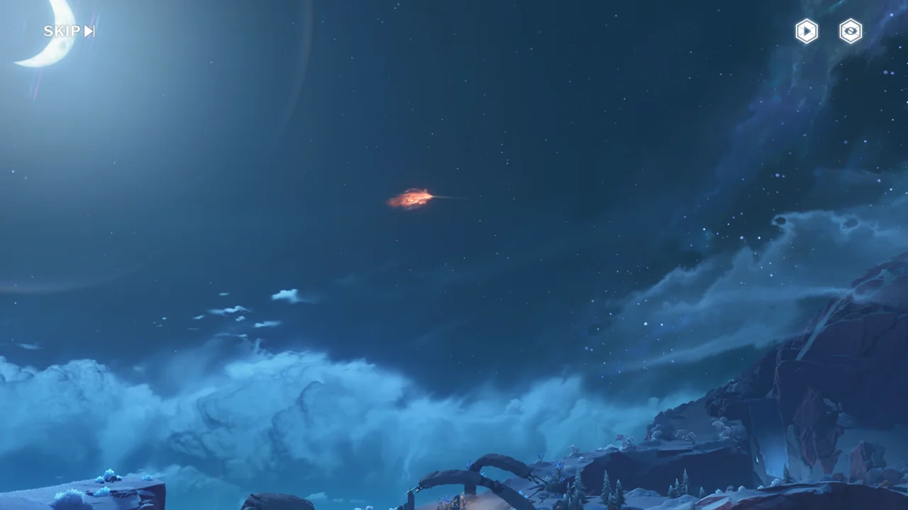 모닥불에서 정해진 시간까지 기다리자, 하늘에서 운석이 떨어져 바다에 빠졌다. 그 돌덩이를 앞에 있던 구멍에 끼우자, 「기원의 땅」으로 가는 길이 열렸다.