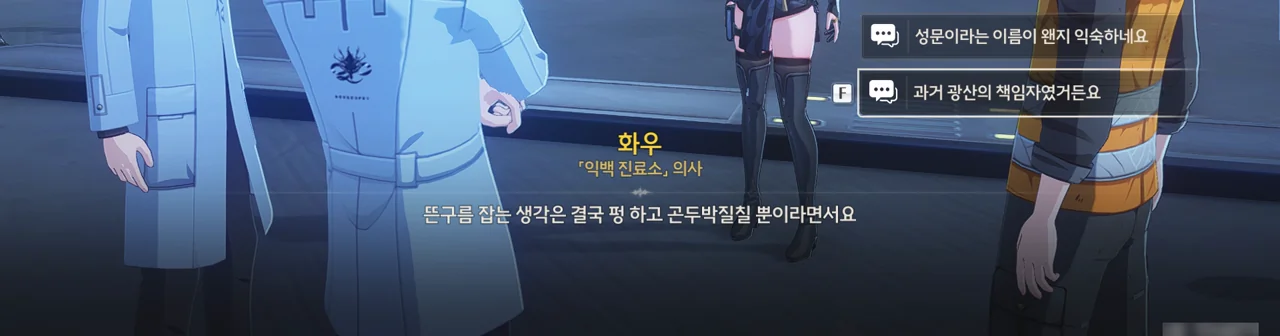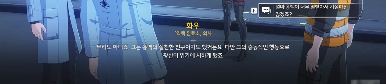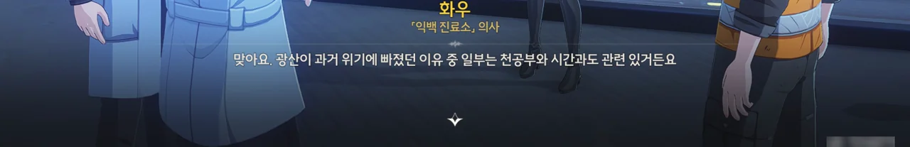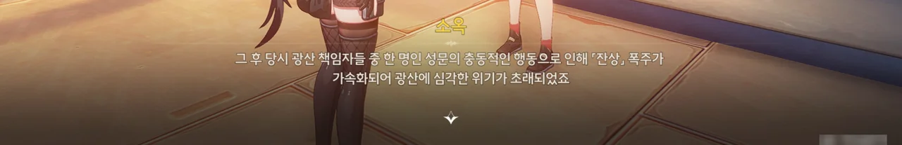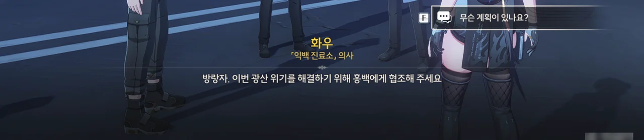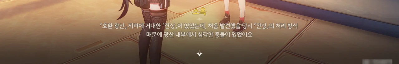 호환 광산의 진료소 의사, 화우가 광산에 큰 위기가 닥쳤다며, 방랑자에게 다급하게 도움을 구한다. 대체 무슨 일이 생겼길래 외부 통신까지 불안정해지는 거야? 그리고 소옥은 광산이 위험하다는데 왜 이렇게 담담한 거지?