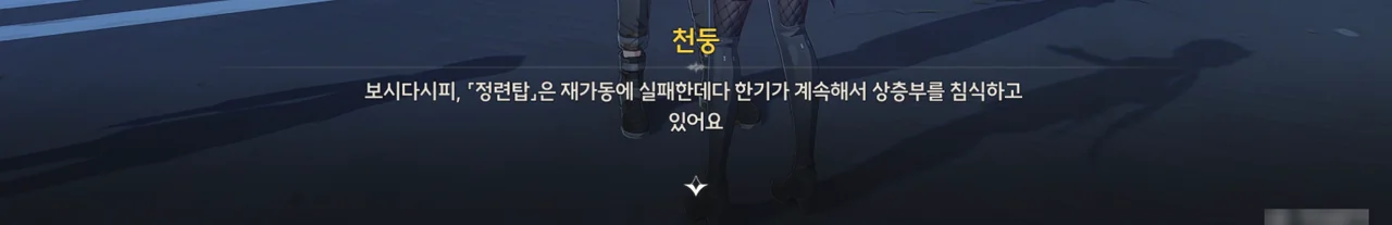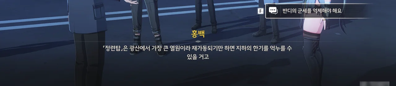 광산 밑에 있는 잔상, 반디의 군세 때문에 정련탑 재가동이 실패했으며, 아래에서 계속 한기가 올라와 상층부를 침식하고 있다고 한다. 저번에 정련탑 재가동을 완료한 줄 알았는데…