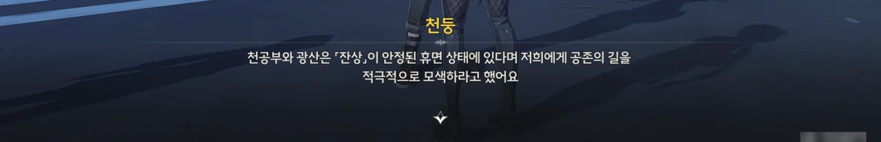 천둥의 말만 들어보면 광산과 천공부가 반디석 등의 자원에 눈이 멀어 잔상의 위험성을 묵과한 것으로 보이지만, 한쪽의 말만 듣고 판단해서는 안되지.