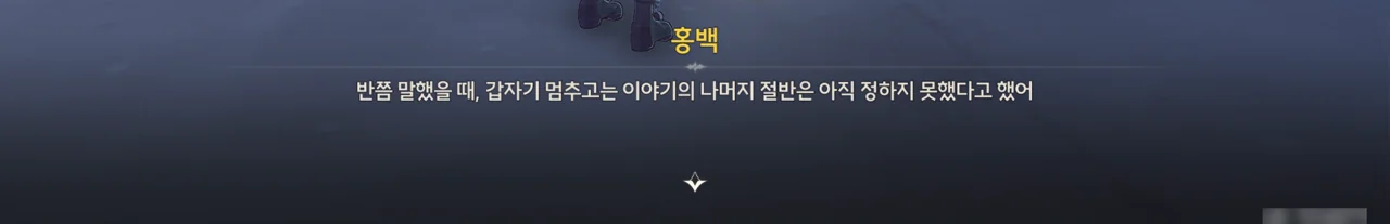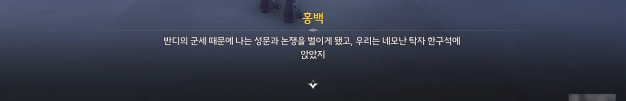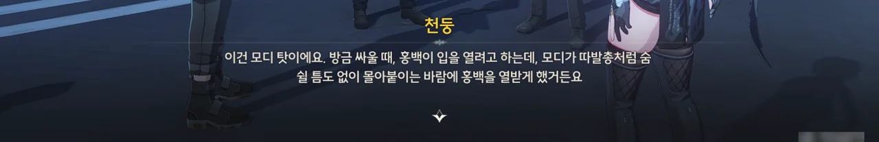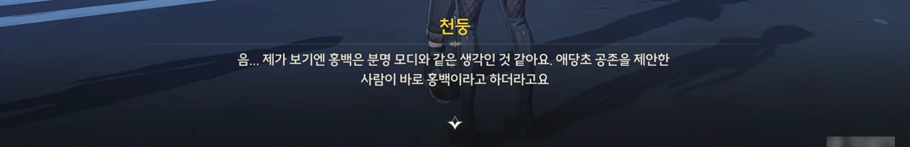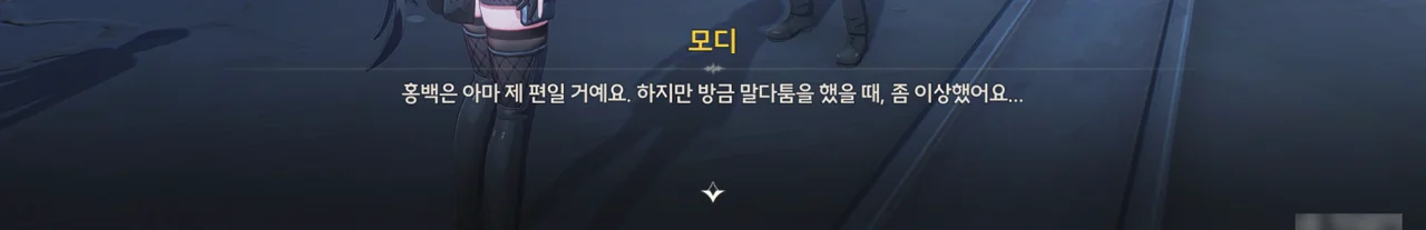 한 가지 이상한 건, 모디에게 홍백의 의견을 물었을 때, 천둥과 마찬가지로 홍백이 자신의 편일 것이라는 추측만 하고 있다는 거다. 대체 뭐지? 홍백이 천둥, 모디와 대화한 건 확실해 보이는데, 왜 둘 다 홍백의 의견에 대해 확신하지 못하고 있는 거야? 그리고 홍백이 이상했다는 건 또 뭐고?
