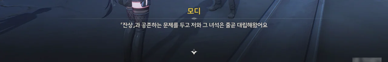 홍백의 생각을 묻자, 홍백이 예전에 먼저 잔상과의 공존을 제안했다고 하니 그의 생각도 모디와 같을 것이라 얼버무린다.