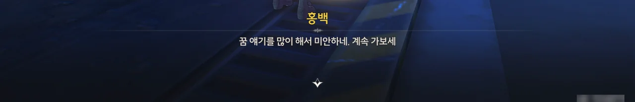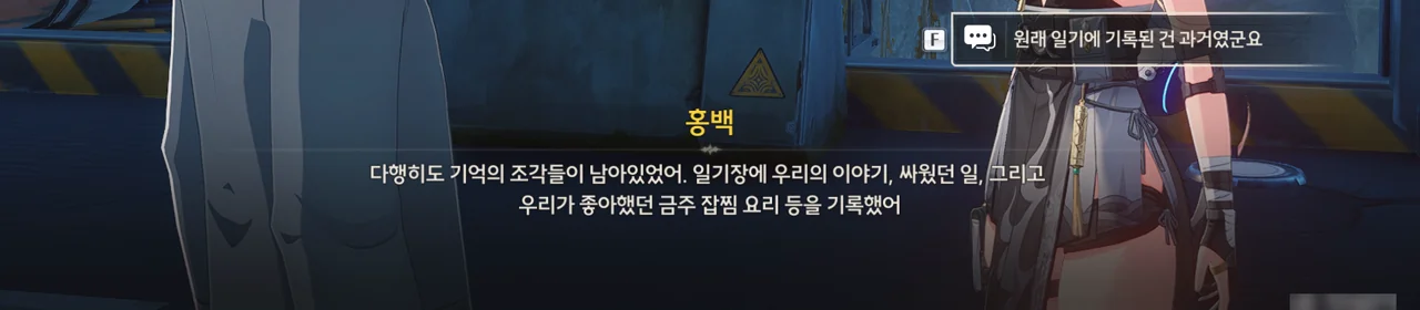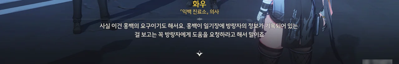 일기장에 적어둔 방랑자의 정보를 본 홍백이 방랑자에게 도움을 요청하라고 했다고 한다. 그런데 홍백이 하는 말이 좀 이상하다.