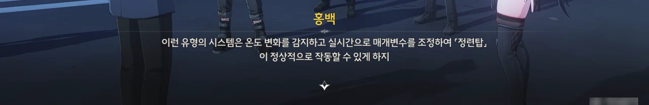 홍백이 이번 정련탑 재기동이 실패한 건 정련탑 온도 보호 시스템 때문일 거라고 말한다. 정련탑 온도 보호 시스템은 정련탑의 온도 변화에 따라 실시간으로 매개 변수를 조정해 정련탑이 정상적으로 작동할 수 있게 하지만, 반디의 군세가 깨어나면서 번진 한기가 정련탑의 온도를 시스템이 처리할 수 있는 범위보다 한참 밑으로 떨어트린 탓에 시스템이 마비되었다고 한다.