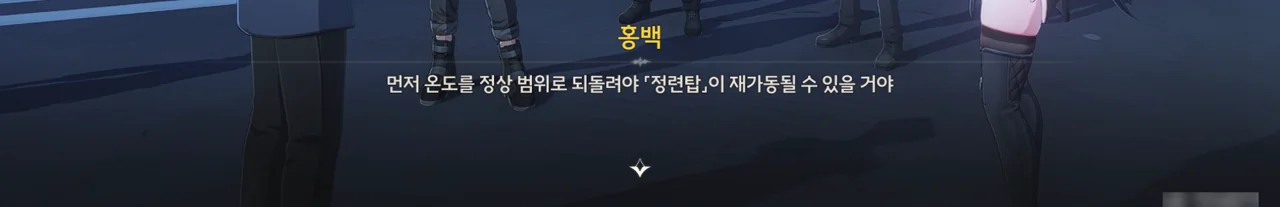 정련탑을 가동하려면 온도를 정상 범위 안으로 올려야 하며, 정련탑을 가동하면 정련탑에서 나오는 열기가 반디의 군세가 내뿜는 한기를 억누를 수 있을 거라고 한다.