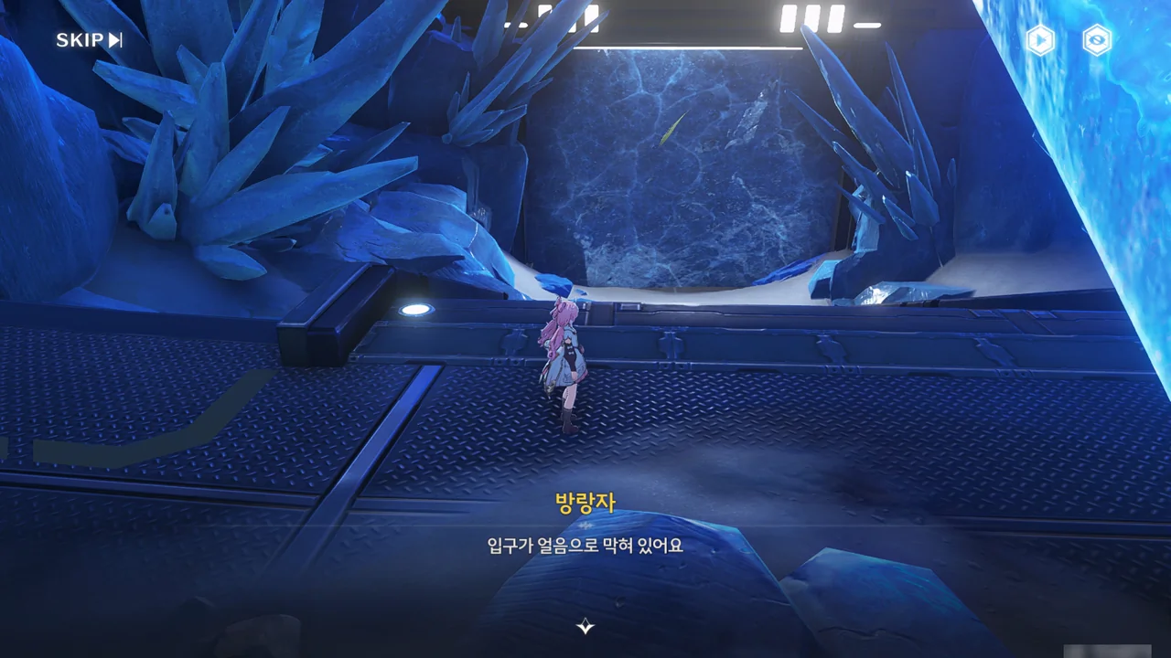 반디의 군세가 깨어나며 생긴 얼음 고치 때문에 광산 입구가 얼음벽으로 막혔다.