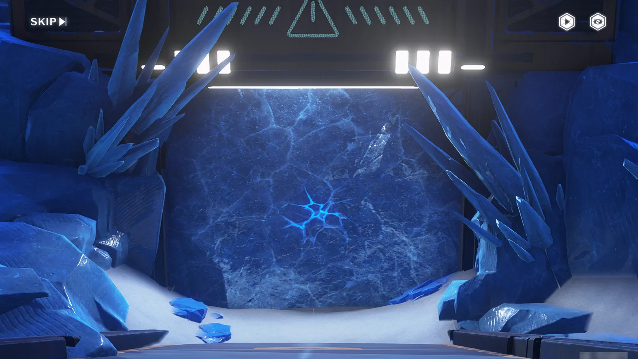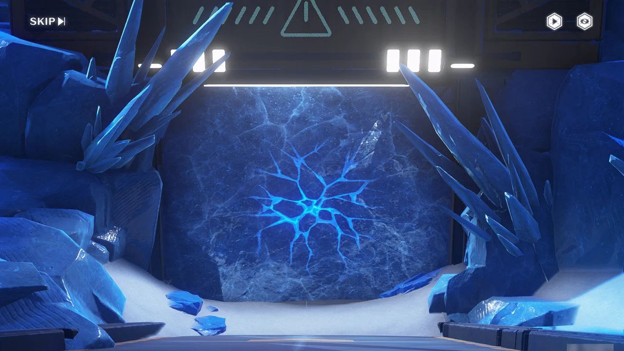 얼음 고치를 하나 제거하니, 얼음벽에 균열이 생겼다.