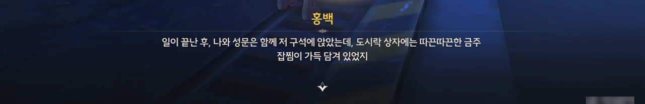 마지막으로, 홍백은 금주 잡찜을 먹어보라는 말을 남기고 가버렸다.