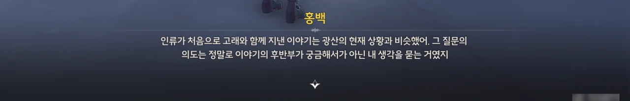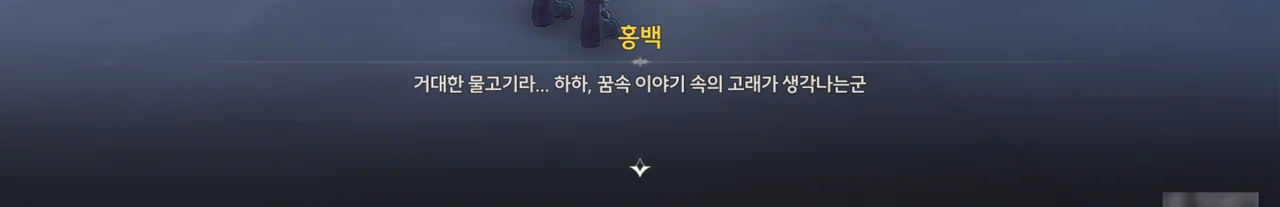 저번에 홍백의 일지에서 보았던 꿈 이야기가 생각난다. 젊은 신입 선원들은 고대 고래가 자신들을 전혀 해치려 하지 않았음에도 고대 고래를 '해양으로부터 비롯된 재앙", '대자연이 만들어낸 악마의 화신'이라 말하는 선장과 선임 선원들의 말만 듣고 고대 고래를 공격했고, 결국엔 자신들이 왜 고대 고래를 공격하는지조차 잊게 되었다고 적혀 있었다.
