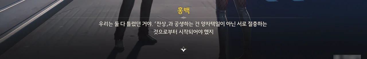 소옥에게 들은 이야기와는 정반대인데? 저 말에 따르면 잔상과의 공존을 주장한 건 홍백이 아니라 성문이었다는 거잖아. 홍백은 오히려 잔상을 제거하자는 의견이었고.