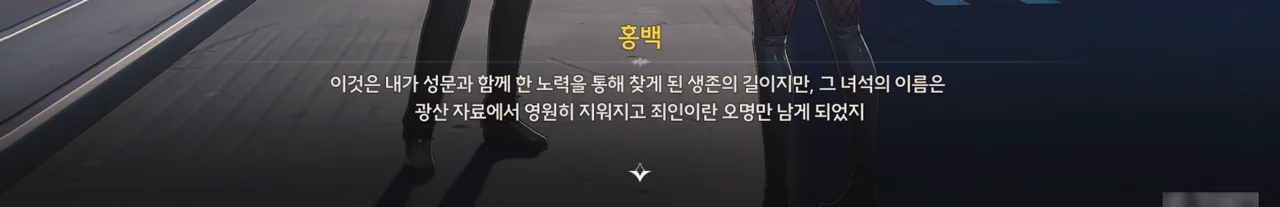 지금의 호환 광산이 있게 된 데에는 성문의 공로가 매우 크지만, 그가 홍백의 죄를 대신 떠안고 죽은 탓에 광산 자료 그 어디에서도 성문의 이름을 찾을 수 없게 되었다. 진실을 기억하고 있는 홍백조차 나이가 들어 성문에 대한 기억을 점차 잃어가고 있으며, 광산 역시 빠르게 변해가며 과거의 흔적을 지워가고 있다. 그래서 홍백은 화우에게 들은 조언대로, 절대로 잊고 싶지 않은 과거의 일을 일기에 적었다.