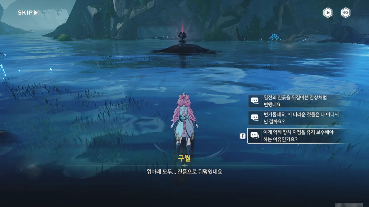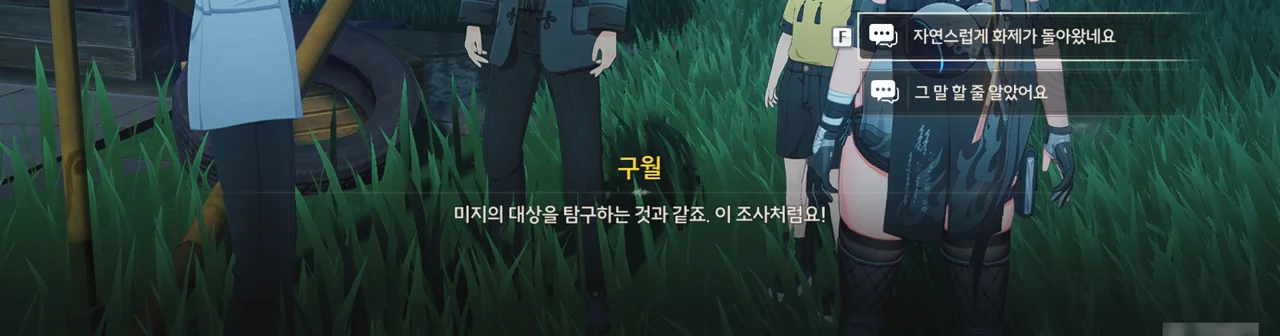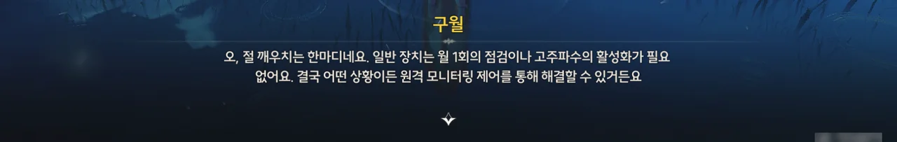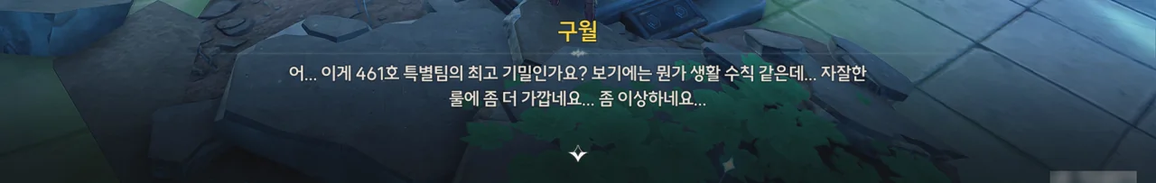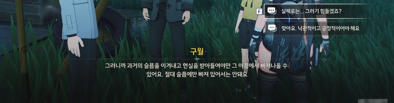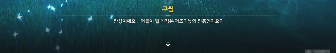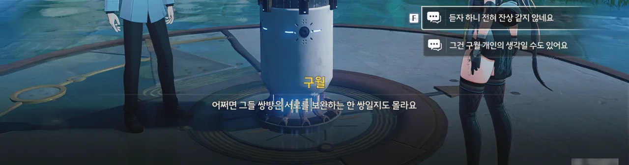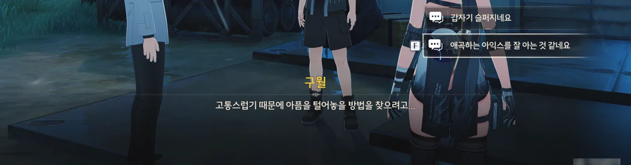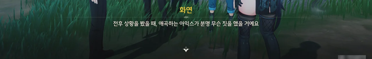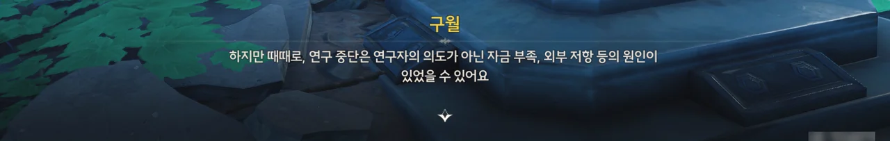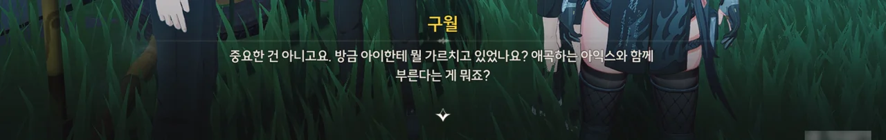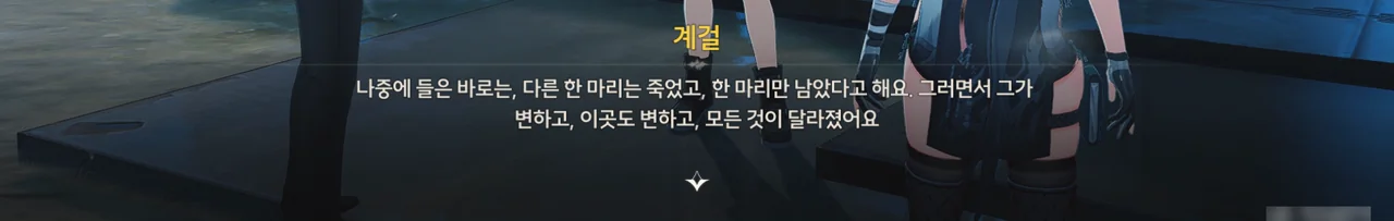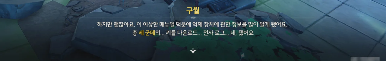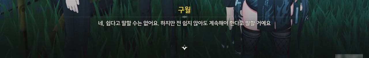 구월이 마치 애곡하는 아익스에게 공감하는 듯한 말을 하는데… 설마 구월도 비슷한 상실을 겪었던 건가? "애곡하는 아익스라는 이상 현상을 해결하려고 하니, 그에 대해 잘 아는 것이 당연하다"라고 말하지만, 애곡하는 아익스는 이상 현상이 아닌 잔상 아닌가? 잔상도 이상 현상 중 하나로 취급하는 건가? 구월이 뭔갈 숨기고 있는 것 같다는 생각이 든다.