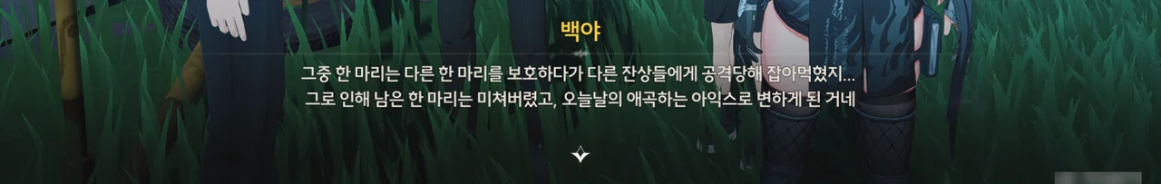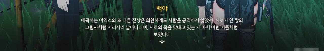이 마을에는 나뭇잎 피리로 애곡하는 아익스와 함께 노래를 부르는 전통이 있다고 한다. 반려가 아직 살아있을 적의 애곡하는 아익스를 말하는 거겠지?