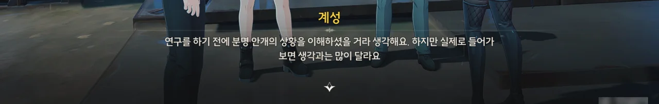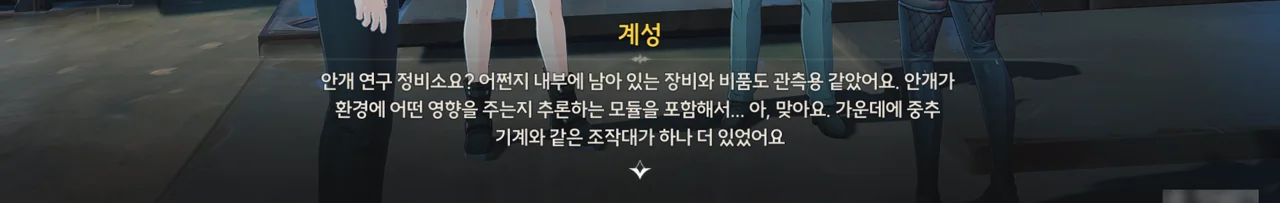 계성이 자신이 발견한 직정 건물에서 관측용으로 추측되는 장비와 비품, 안개가 환경에 어떤 영향을 끼치는지 추론하는 모듈을 보았다고 한다. 정말 거기가 직정의 안개 연구 정비소였던 모양이다.