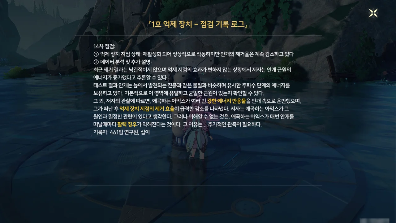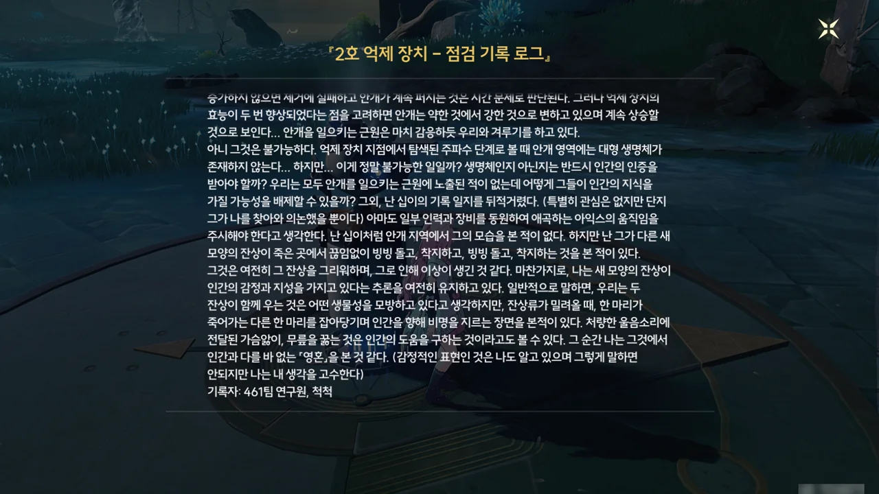 안개 억제 장치 안에서 애곡하는 아익스 관찰 일지를 발견했다.