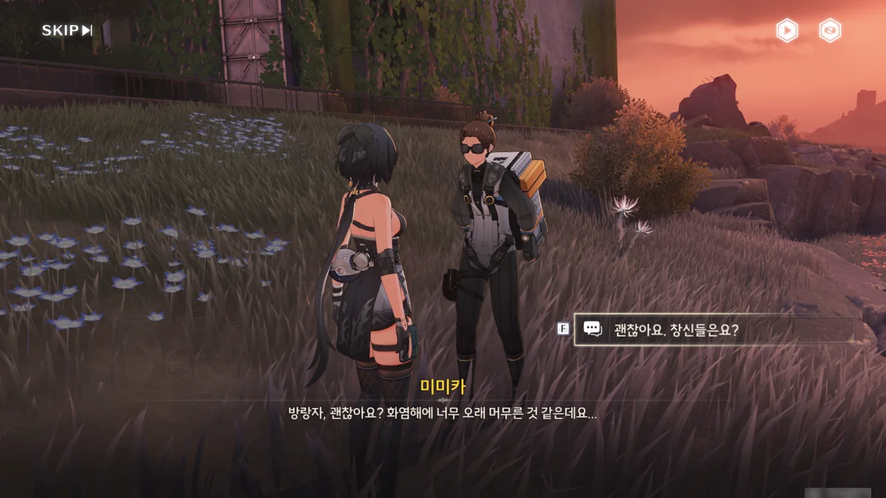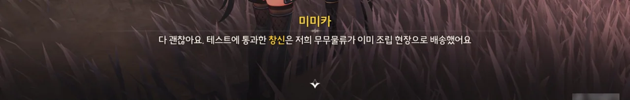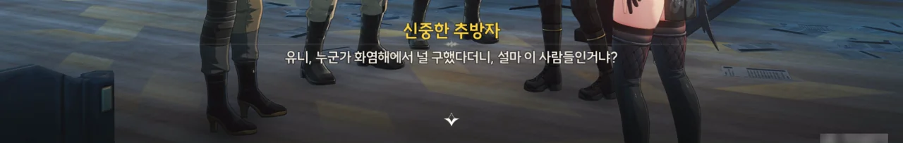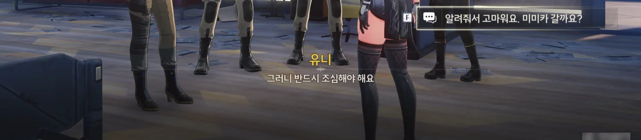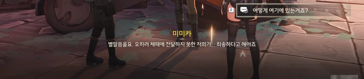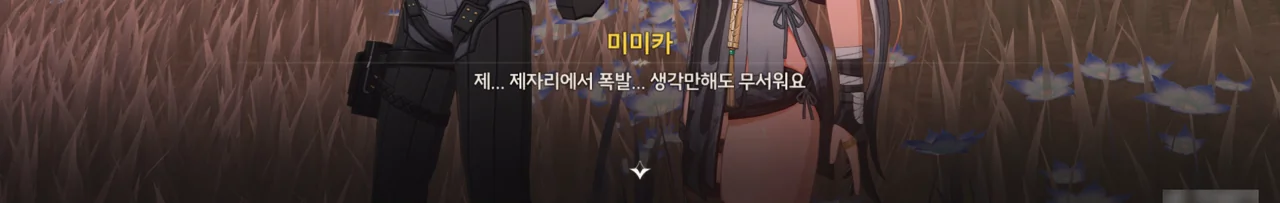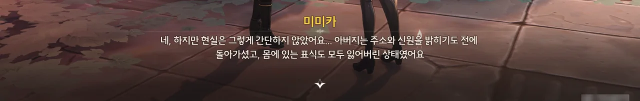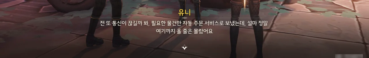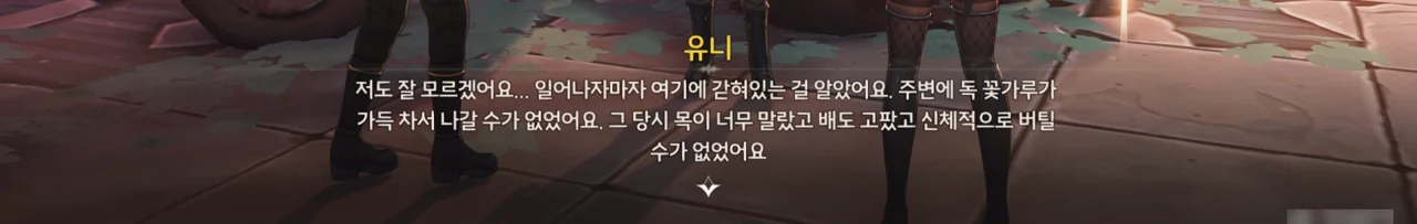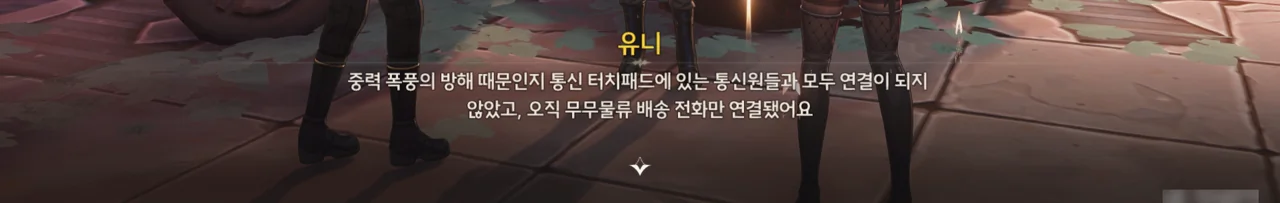 이 사람의 이름은 유니. 어쩌다 여기에 온 건진 기억이 나지 않지만, 일어나 보니 주변에 화염꽃이 가득해 나갈 수 없었다고 한다. 중력 폭풍의 영향 때문인지, 다른 사람들과 연락이 닿지 않는 와중에 오직 무무물류 배송 전화만 연결이 되어, 당장 필요한 물건만 자동 주문 서비스로 신청했고, 그게 상만과 미미카가 다투던 주문의 정체였다.