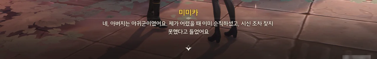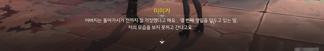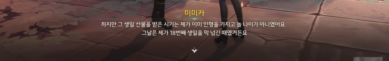 선물을 받기 8년 전, 그녀의 아버지는 잔상류와의 전투에서 동료를 엄호하다 계곡에 떨어져 중상을 입었다. 지나가던 무무물류 직원에게 발견되었지만, 이미 상처가 너무 깊어 가망이 없는 상태. 죽기 직전까지 딸을 걱정한 미미카의 아버지는 무무물류 직원에게 마지막 의뢰를 했다. 곧 열 살을 맞는 자기 딸에게 인형을 배달해 달라는 것이었다.
