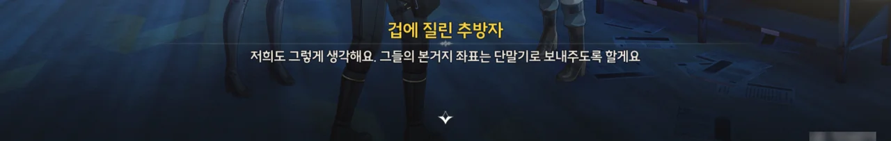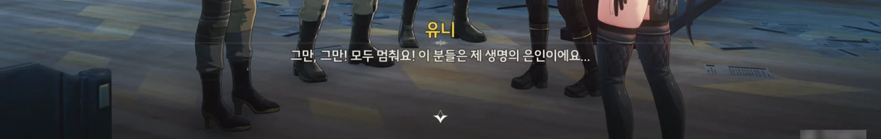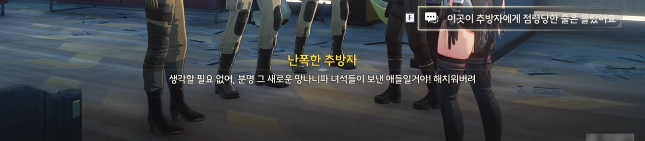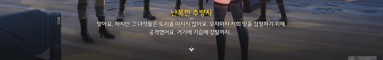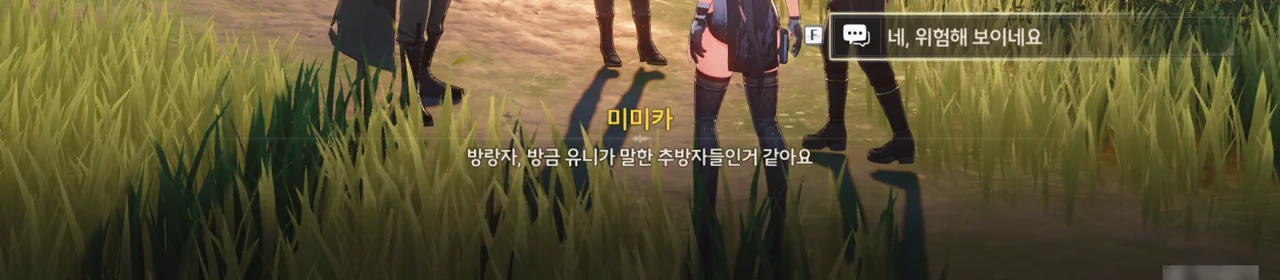 하지만 새로 온 '망나니파'인지 뭔지 하는 녀석들은 유니 쪽 추방자 일행의 영역을 노리고 있으며, 방랑자 일행을 유니 쪽 추방자 일행으로 간주해 공격할지도 모른다고 한다.