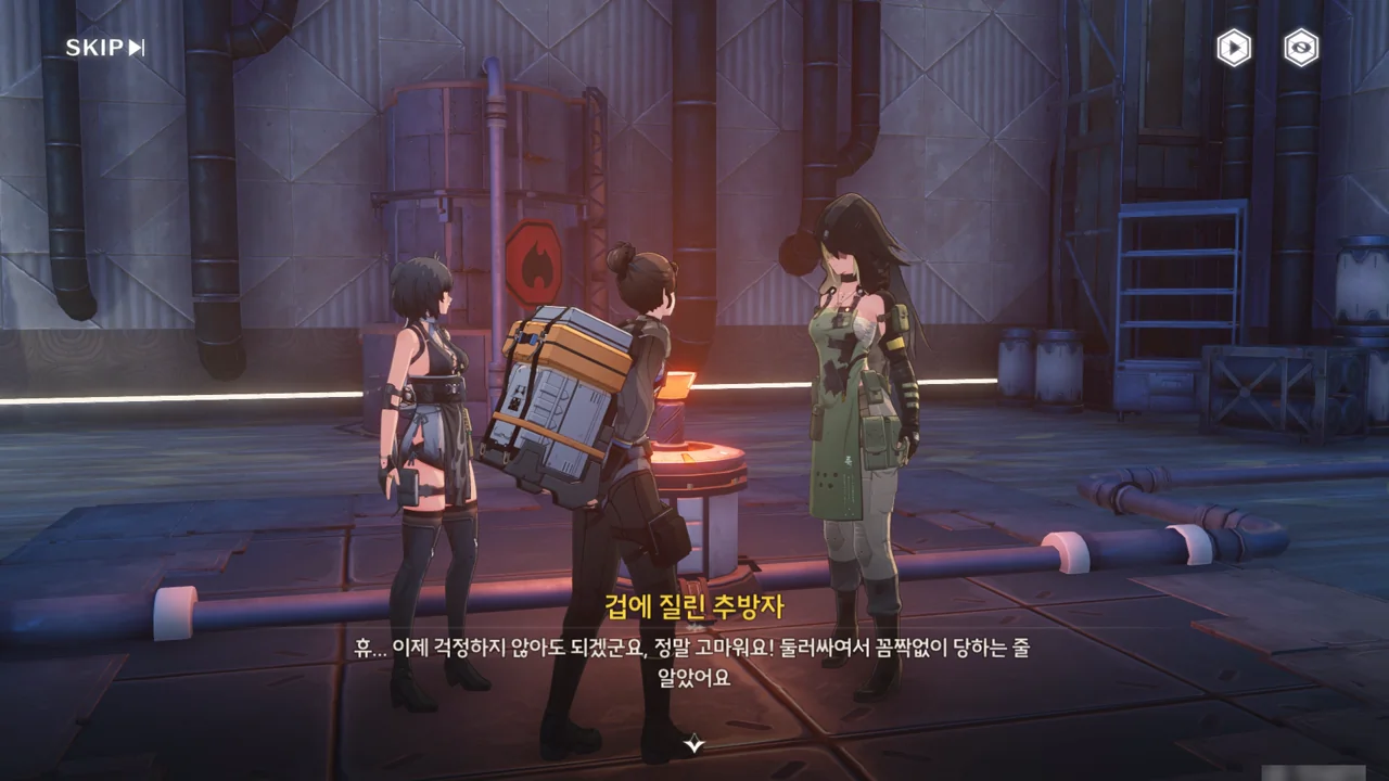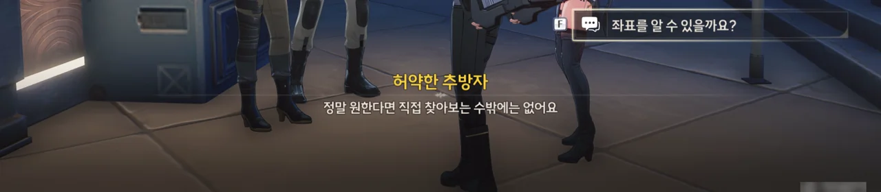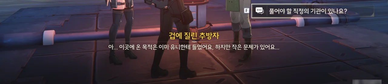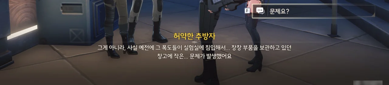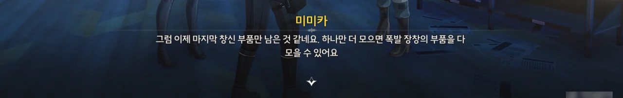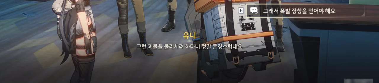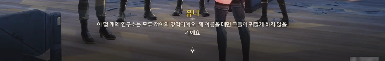 폭발 장창 예비 부품을 보관한 연구소는 모두 유니 쪽 추방자 일행의 영역이기에, 유니의 이름을 대면 귀찮게 하지 않을 거라고 한다.