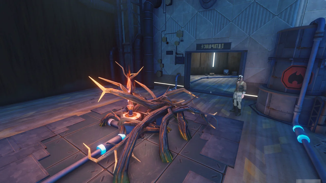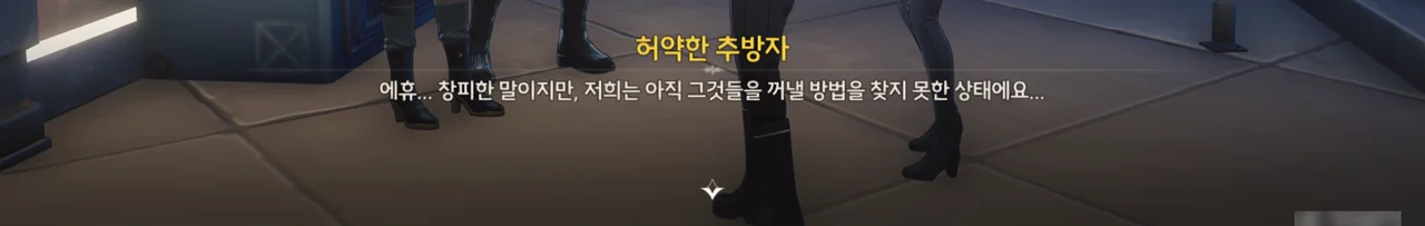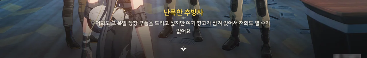 추방자가 폭발 장창 부품을 내주고 싶어도, 창고의 자물쇠가 일종의 테스트를 거쳐야 열 수 있도록 되어 있어 부품을 줄 수 없다고 말한다.