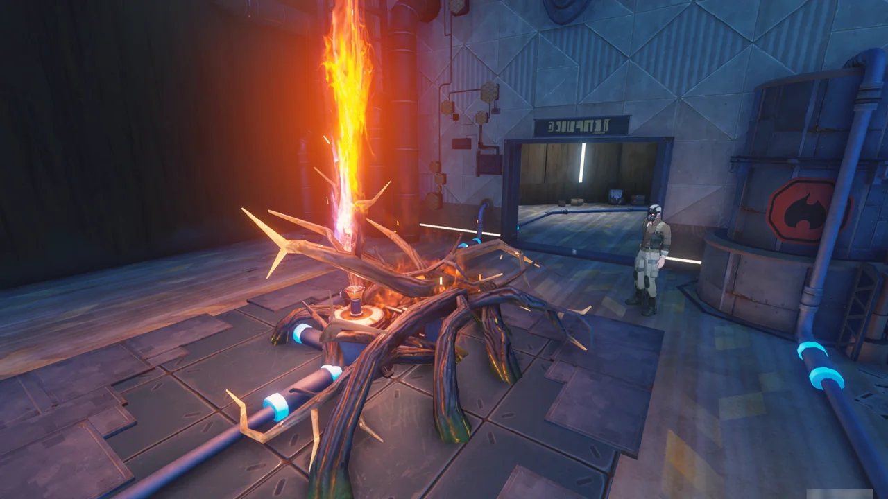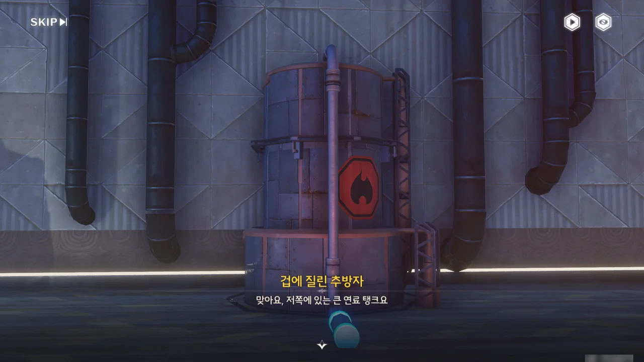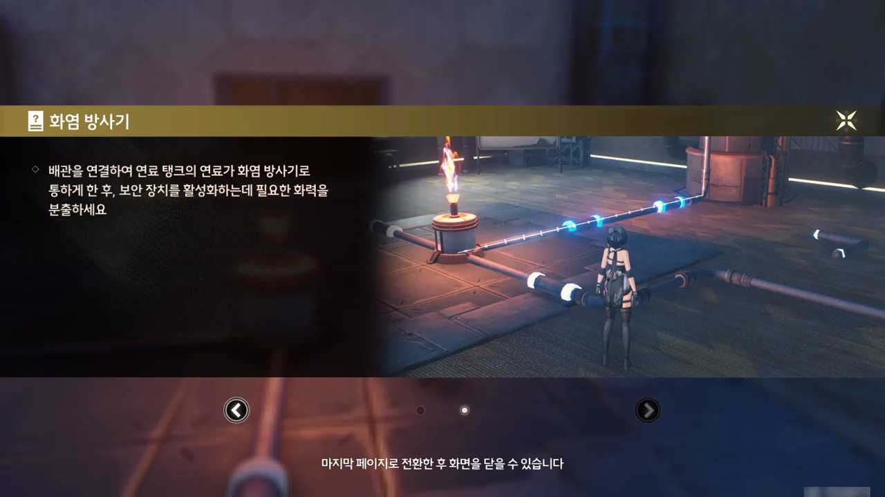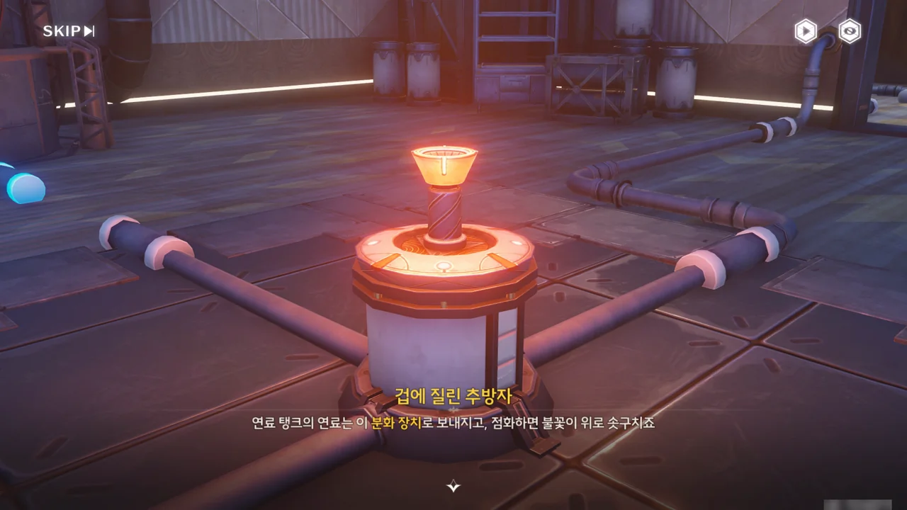 눈앞에 있는 연료 탱크를 연결하니, 분화 장치에 불이 붙었다.