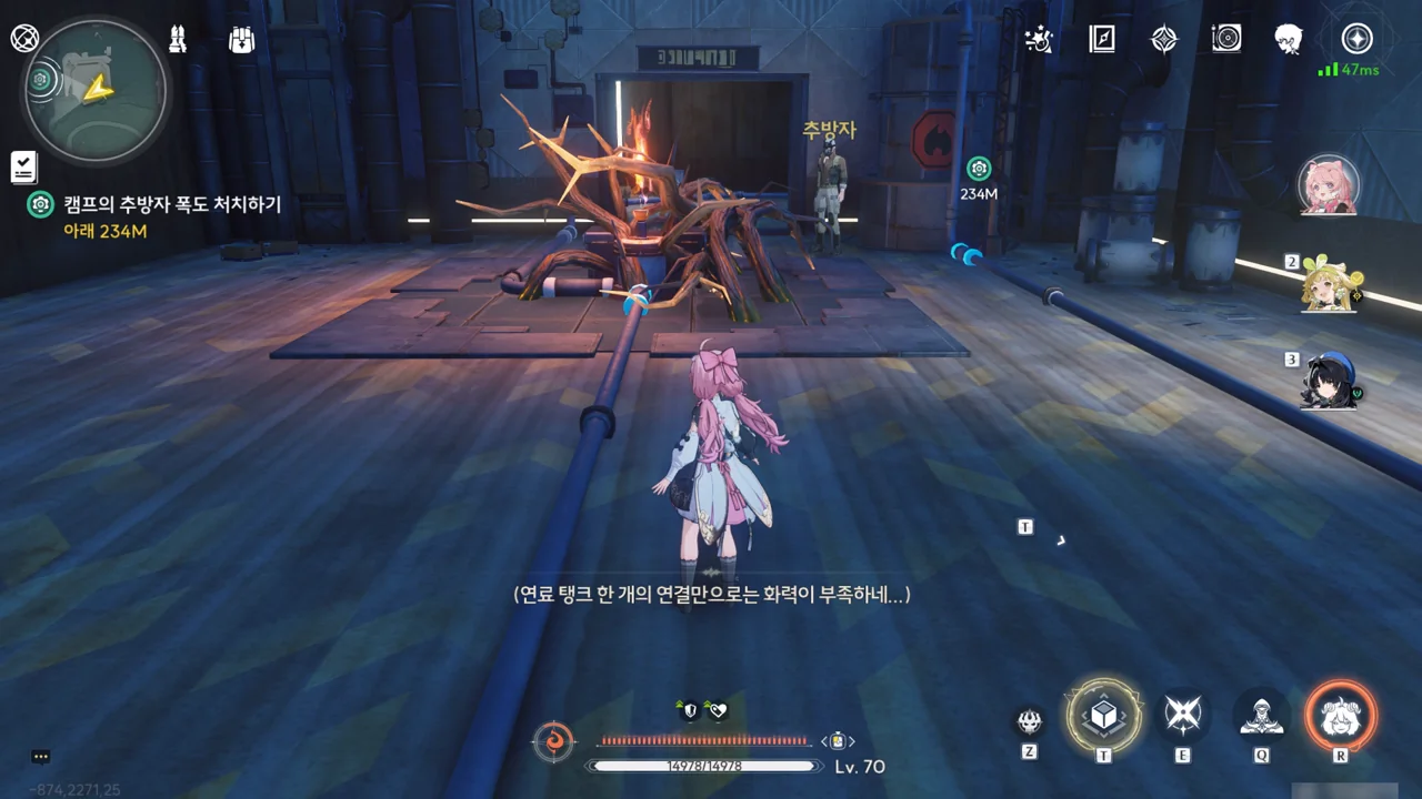 설마 그 건물 잔해를 혼자서 다 치울 수 있을까 걱정했는데, 정말로 혼자서 건물 잔해를 다 치웠다. 하지만 그 밑에 있던 가시덤불은 치우지 못해, 연료 탱크 두 개를 연결해 태웠다.