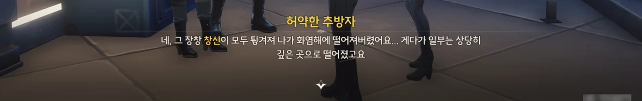 혹시 방랑자가 건물 안에서 퍼즐만 세 번 연속으로 푸는 걸 지겨워할까 봐 망나니파 추방자들이 장창 창신들을 전부 화염해에 흩뿌렸다고 한다. 고마워서 눈물이 날 것 같네.