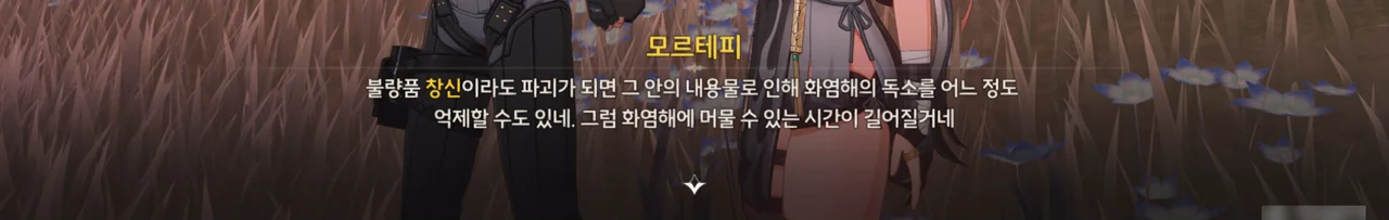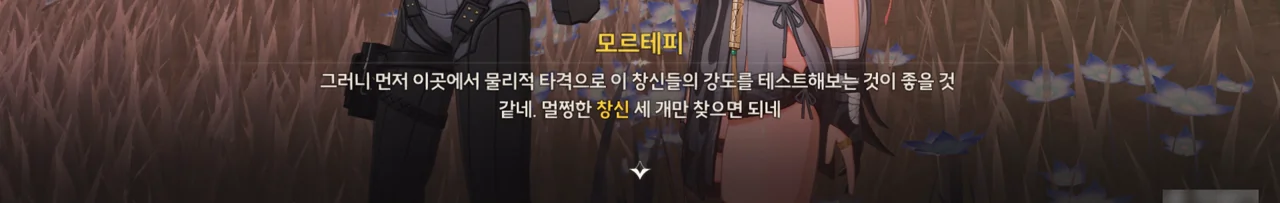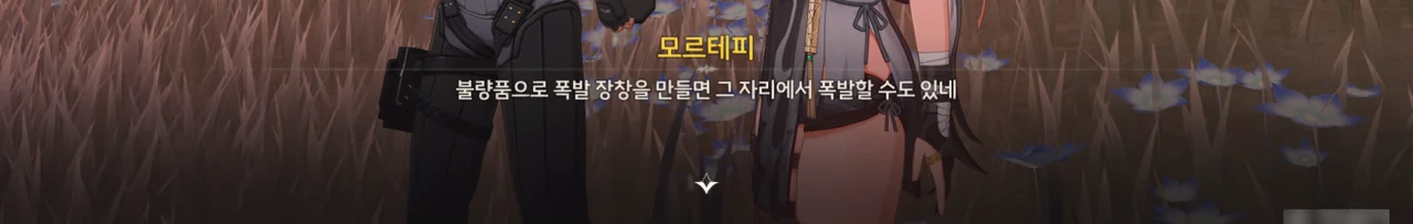 얼씨구. 모르테피가 조사한 바에 따르면, 화염해에 흩뿌려진 창신 부품에는 불량품이 다수 섞여 있다고 한다. 만약 불량품으로 폭발 장창을 만들면 그 자리에서 펑하고 터진다고 한다.