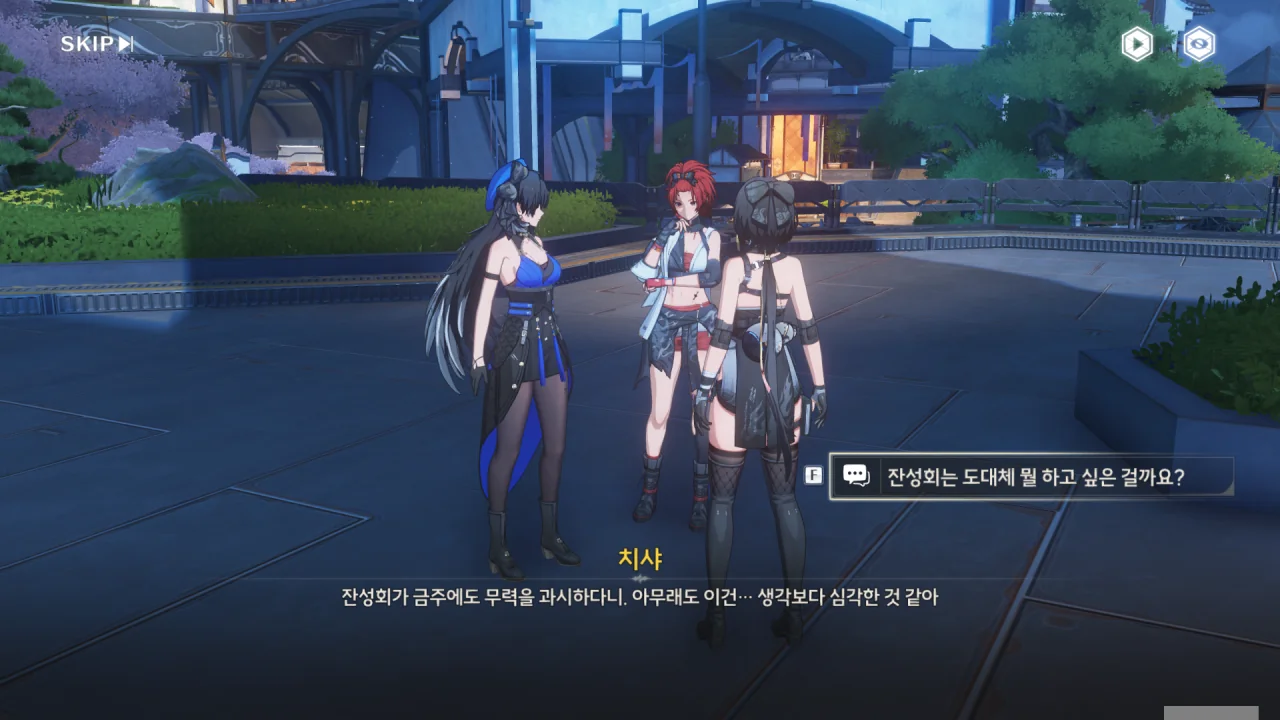 금희와 잔성회 모두 방랑자를 포섭하고 싶어 한다. 잔성회는 대놓고 '너, 잔성회에 들어와라!" — 스카는 "너의 선택을 기대하고 있지"라고 말했지만, 방랑자가 잔성회에 오길 바란다는 말을 부정하지는 않았다 — 라고 말한다면, 금희는 '도와주셨으면 좋겠지만, 잘 생각해 보고 결정해 주세요'라고 말한다는 게 차이점이다.