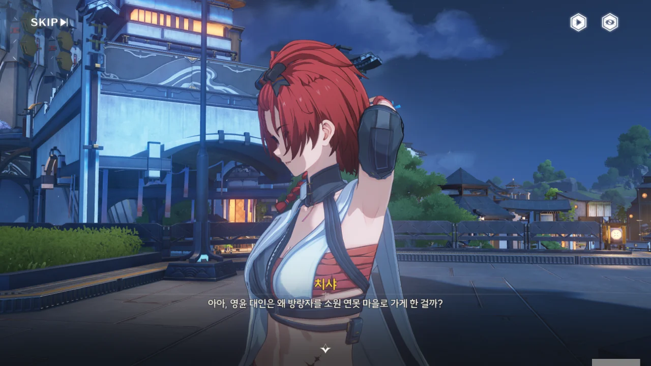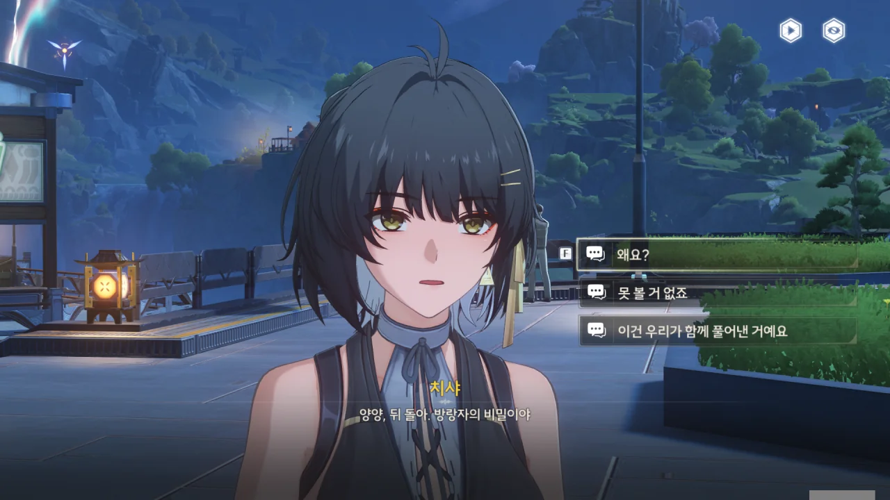 치샤가 방랑자의 말을 이해하지 못해, 방랑자가 "별거 아니에요"라고 얼버무리는 상황만 나왔다.