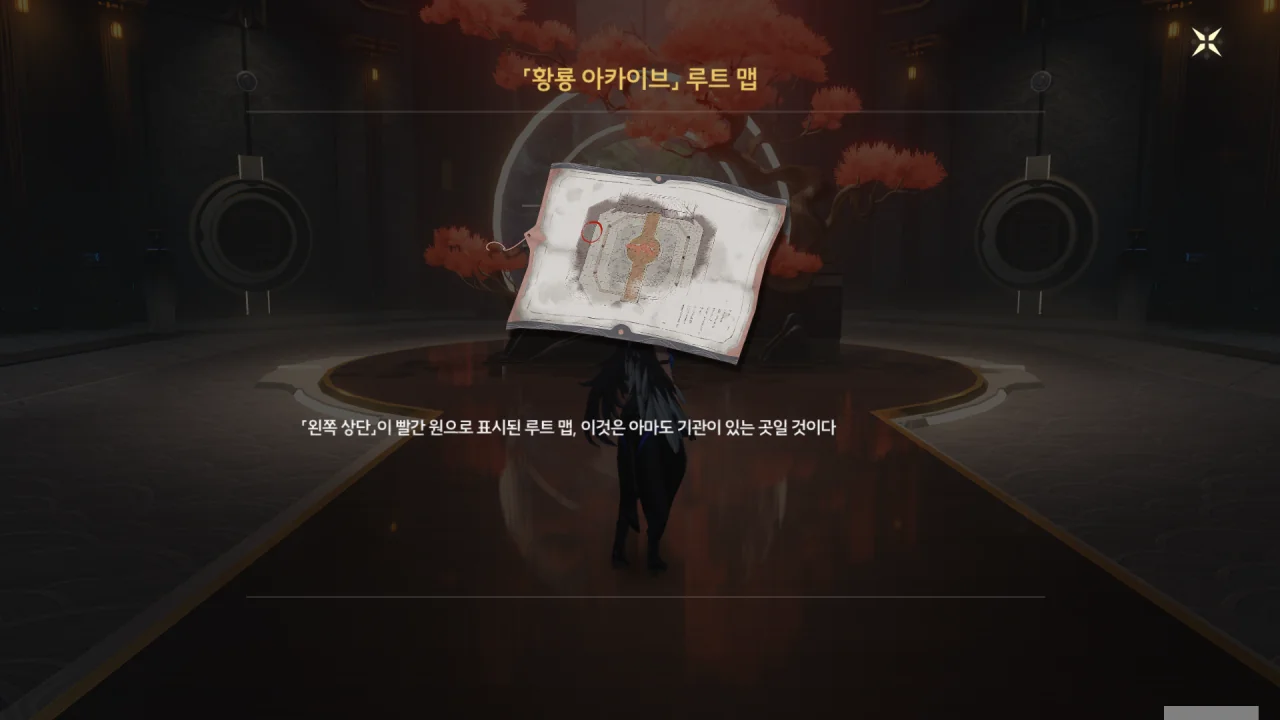변정에 들어오자, 「황룡 아카이브」로 가는 지도가 자동으로 눈앞에 펼쳐진다.