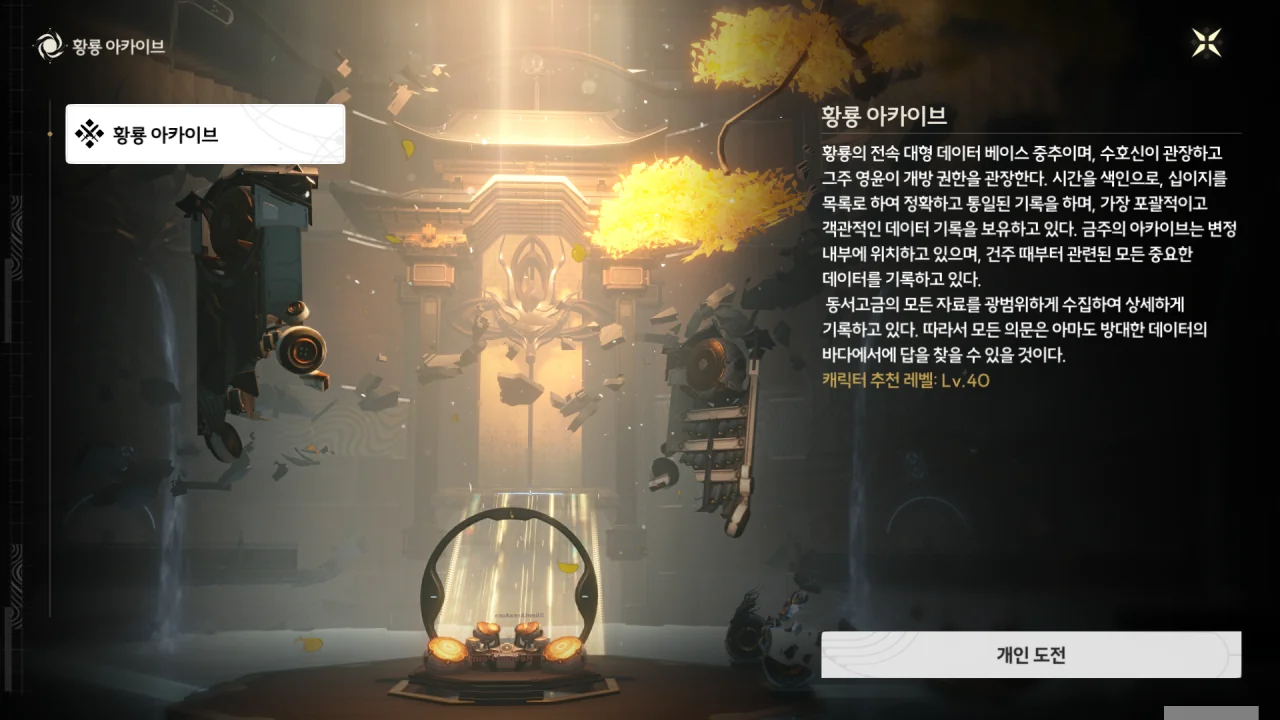 「황룡 아카이브」는 인스턴스 던전 취급이다.
