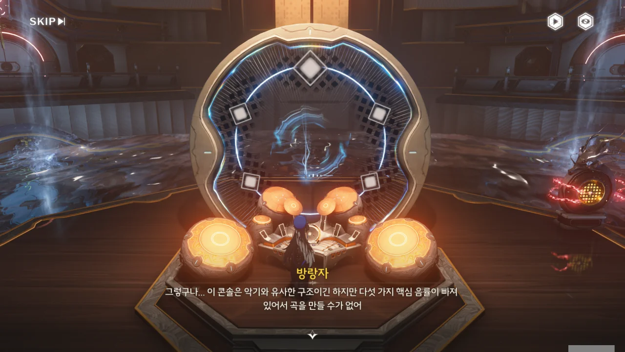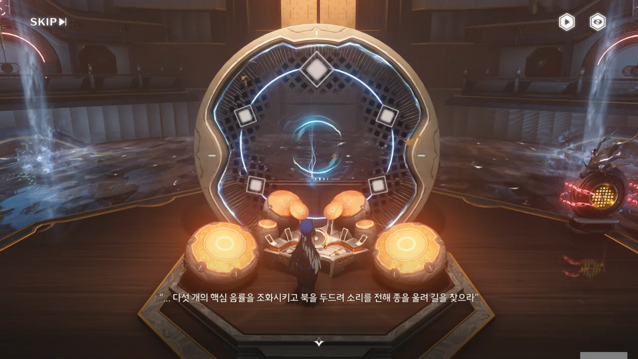 콘솔 뒤에서 음률 하나를 찾아 콘솔에 넣자, 잠겨있던 북의 잠금이 해제되었다.