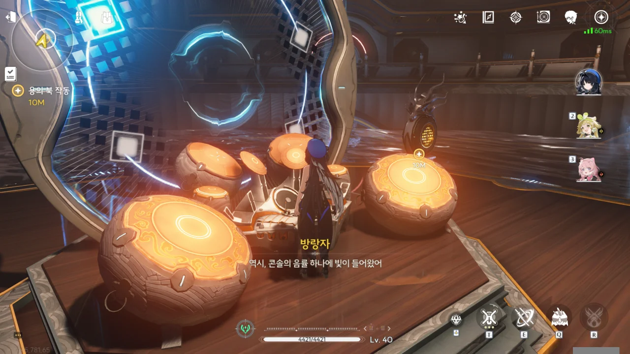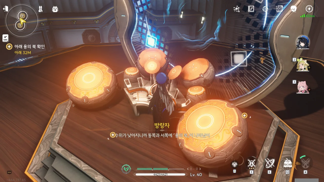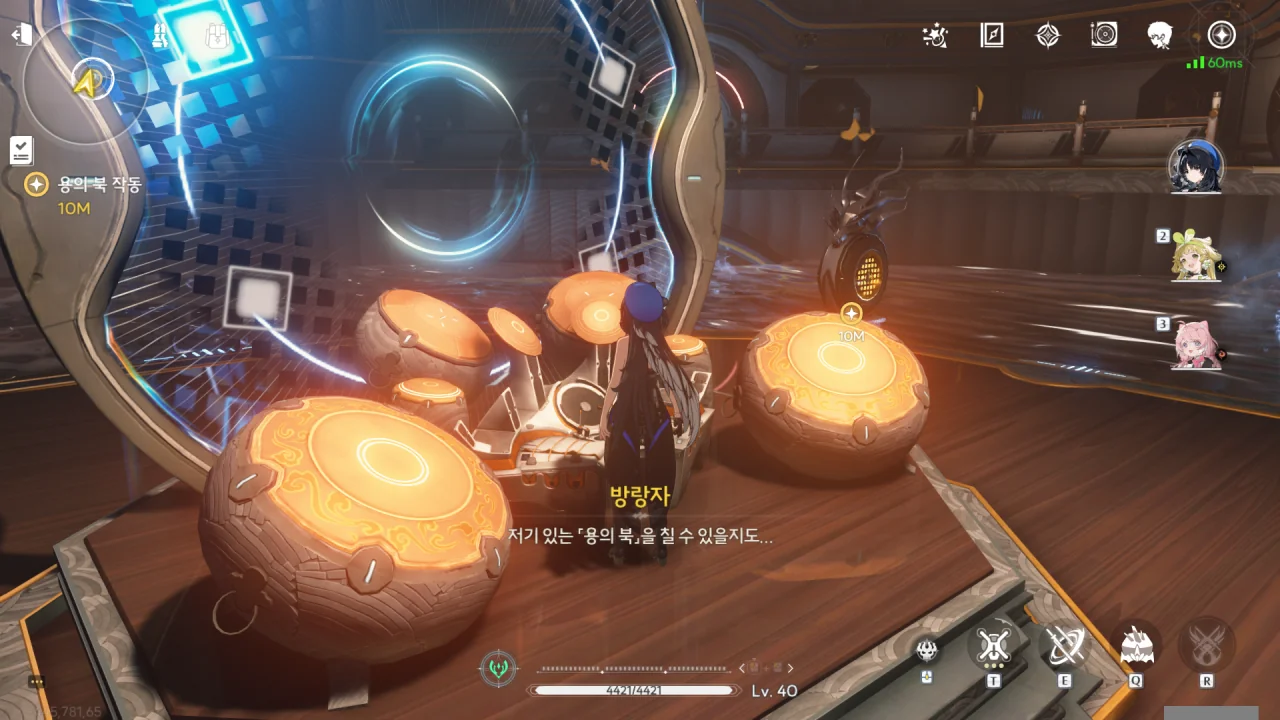 북은 가까이 다가가 F를 누르면 되고, 종은 공격하면 된다.