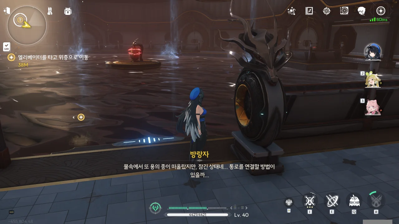두 번째 음률을 콘솔에 넣자, 수위가 낮아져 아래층에 접근할 수 있게 되었다.