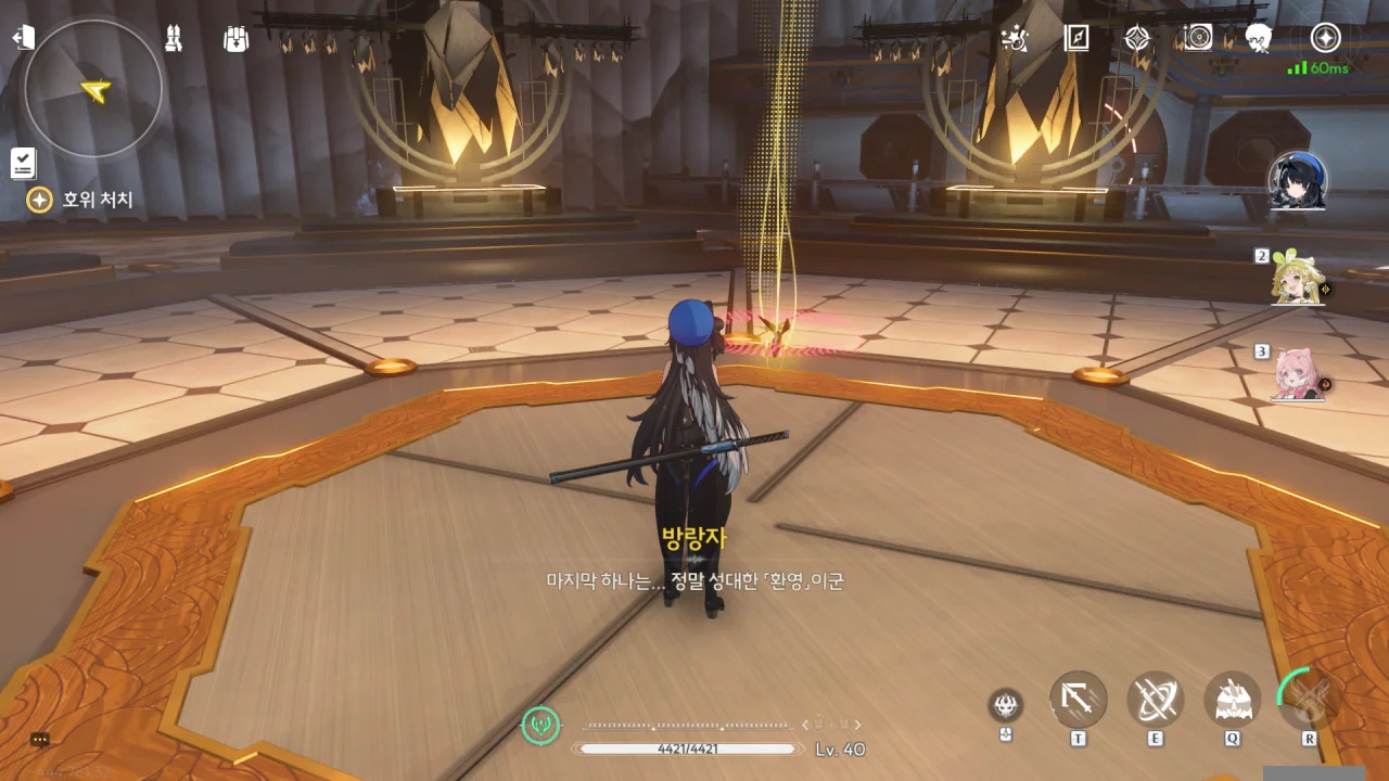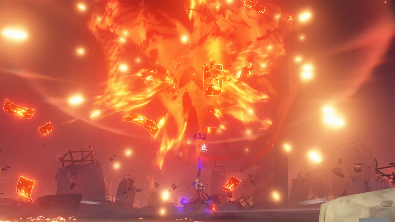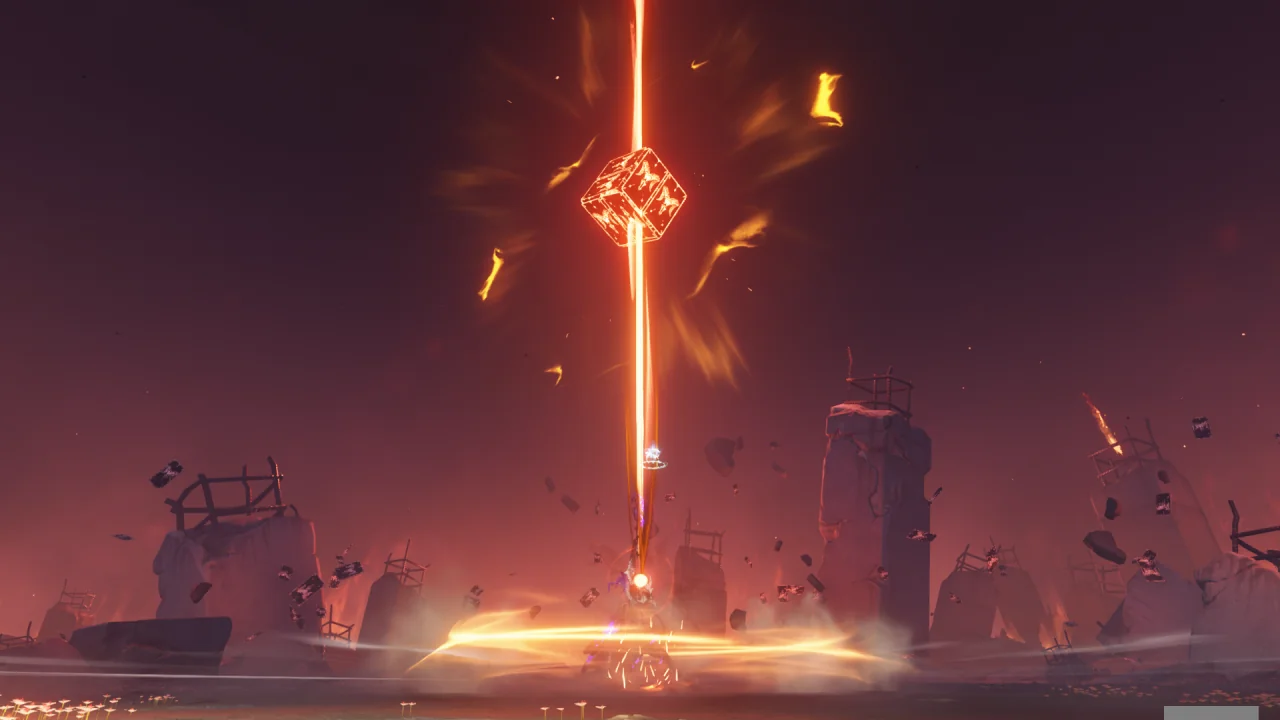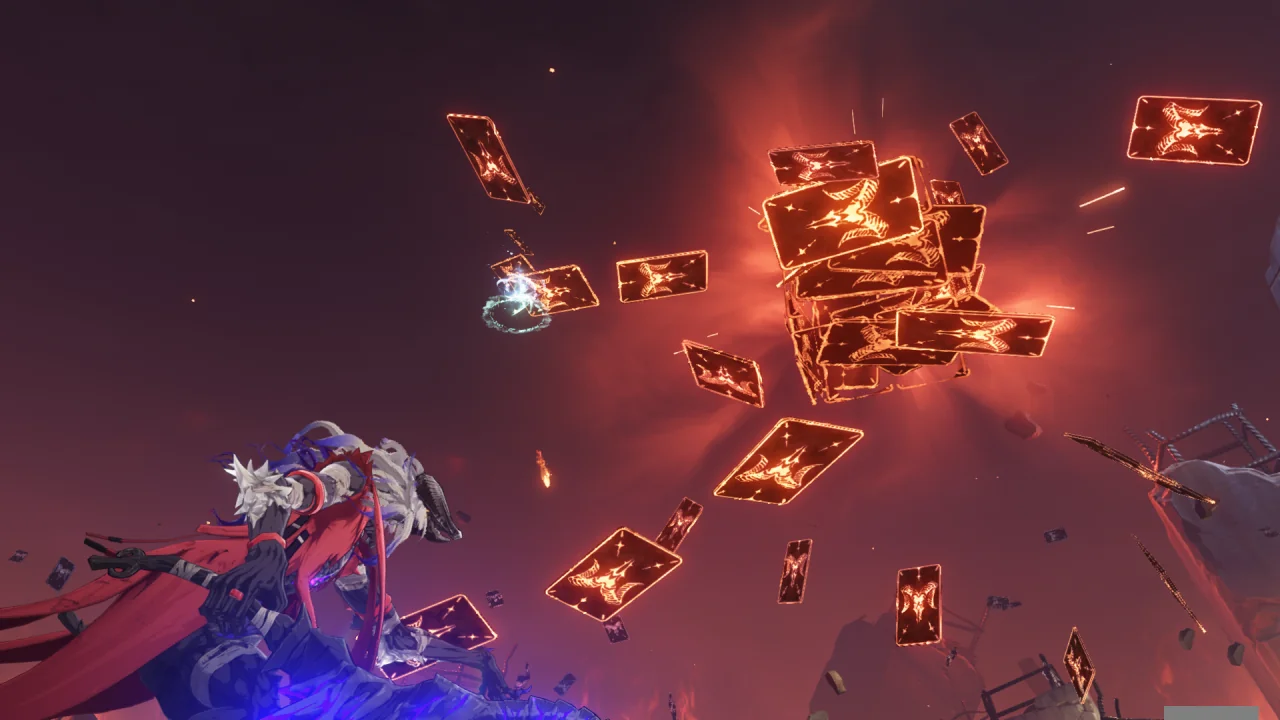 다른 하나는 이렇게 방랑자를 붙잡아 하늘로 던져 카드로 만든 육방체에 가둔 후, 아래에서 검기를 쏴 육방체 채로 터트리는 것이다. 이건 좀 아프다.