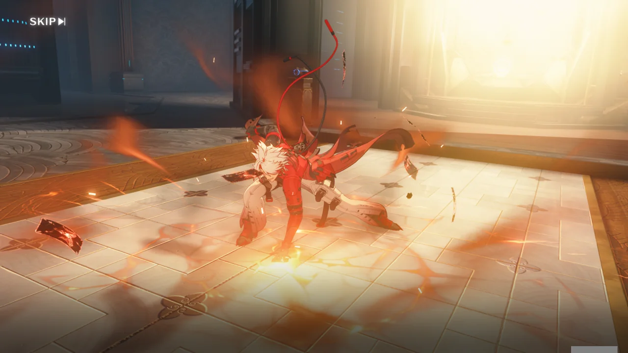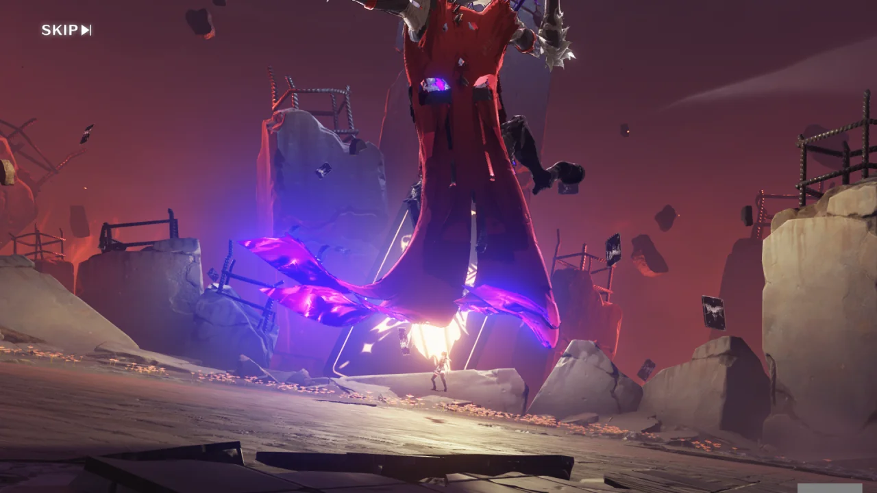 방랑자와 힘겨루기에서 진 스카는 볼품없게 뒤로 날아가나 싶더니, 손톱으로 바닥에 고랑을 만든다. 하지만 거기서 힘이 다한 건지, 그대로 변신이 풀리며 제자리에 풀썩 쓰러진다.
