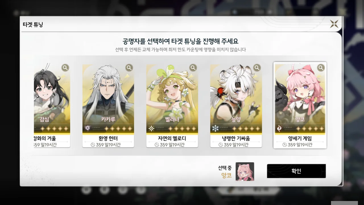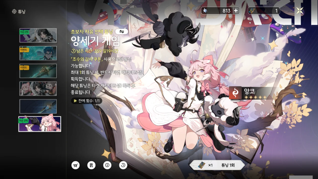 그래서 저번에 '초보자 자유 선택 튜닝" 대상으로 선택한 앙코를 감사 쿠폰으로 뽑고, 그다음 순위였던 감심을 '초보자 자유 선택 튜닝" 대상으로 선택했다.