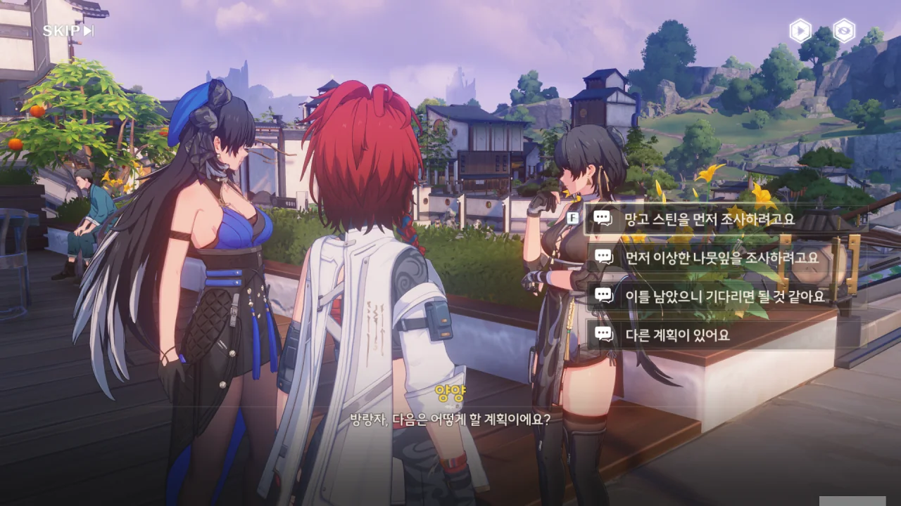 아쉽게도 치샤는 일 때문에 방랑자와 함께하지 못하게 되었다. 약방의 감초처럼 딱딱한 분위기를 풀어주는 치샤가 없다니, 안타깝다.