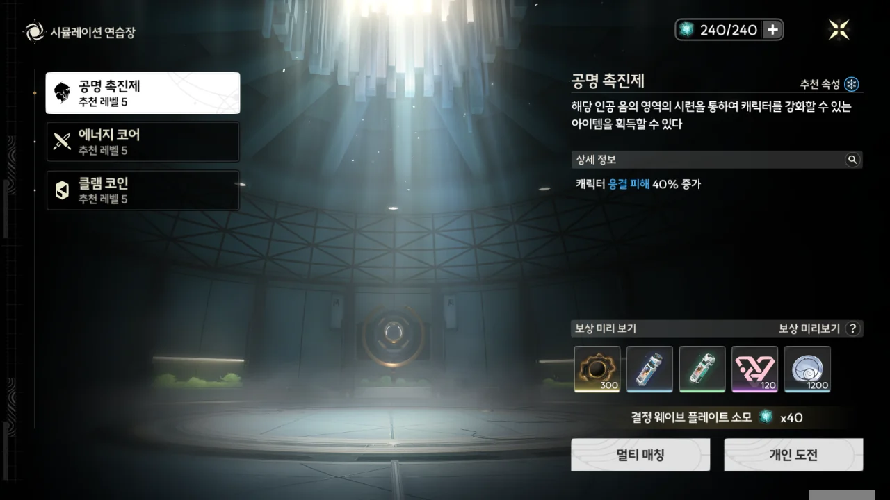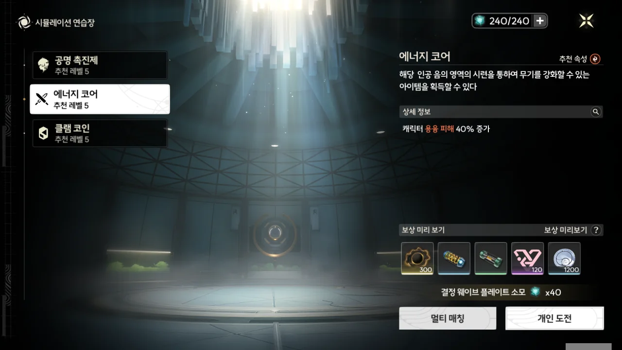 '결정 웨이브 플레이트", 즉 피로도를 소모해 캐릭터 성장 재화, 무기 성장 재화, 클램 코인을 얻을 수 있다.