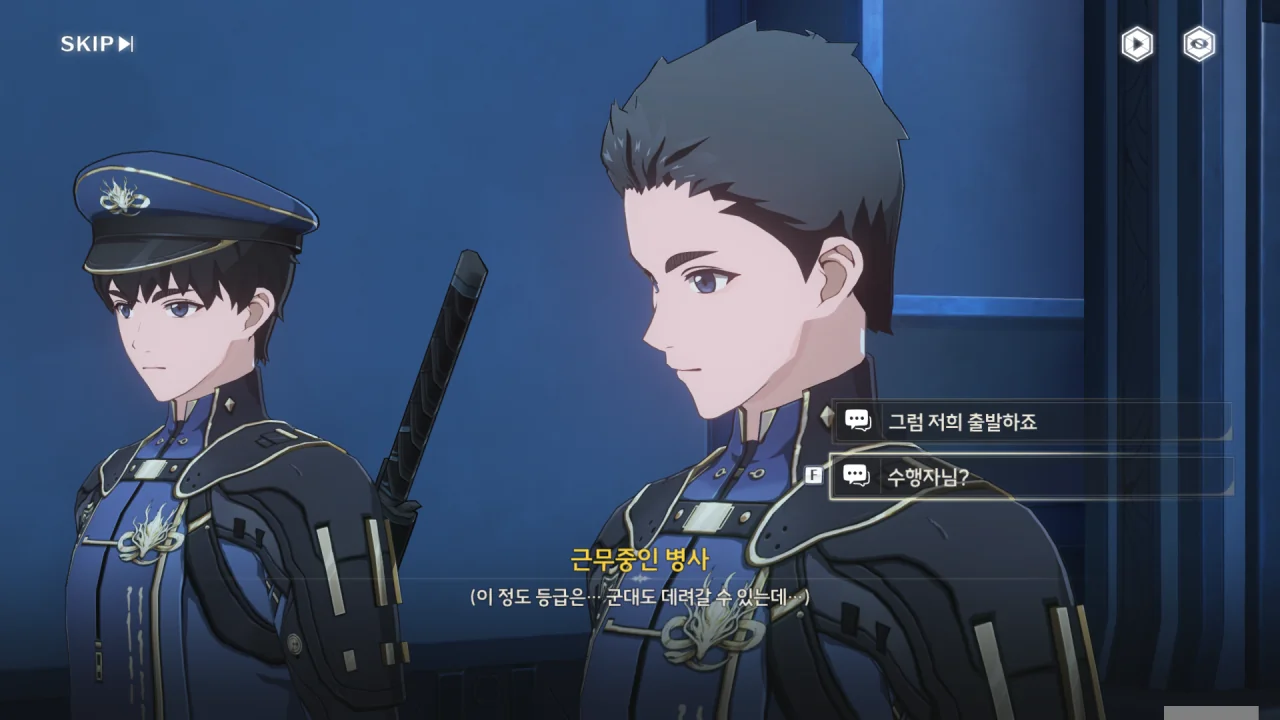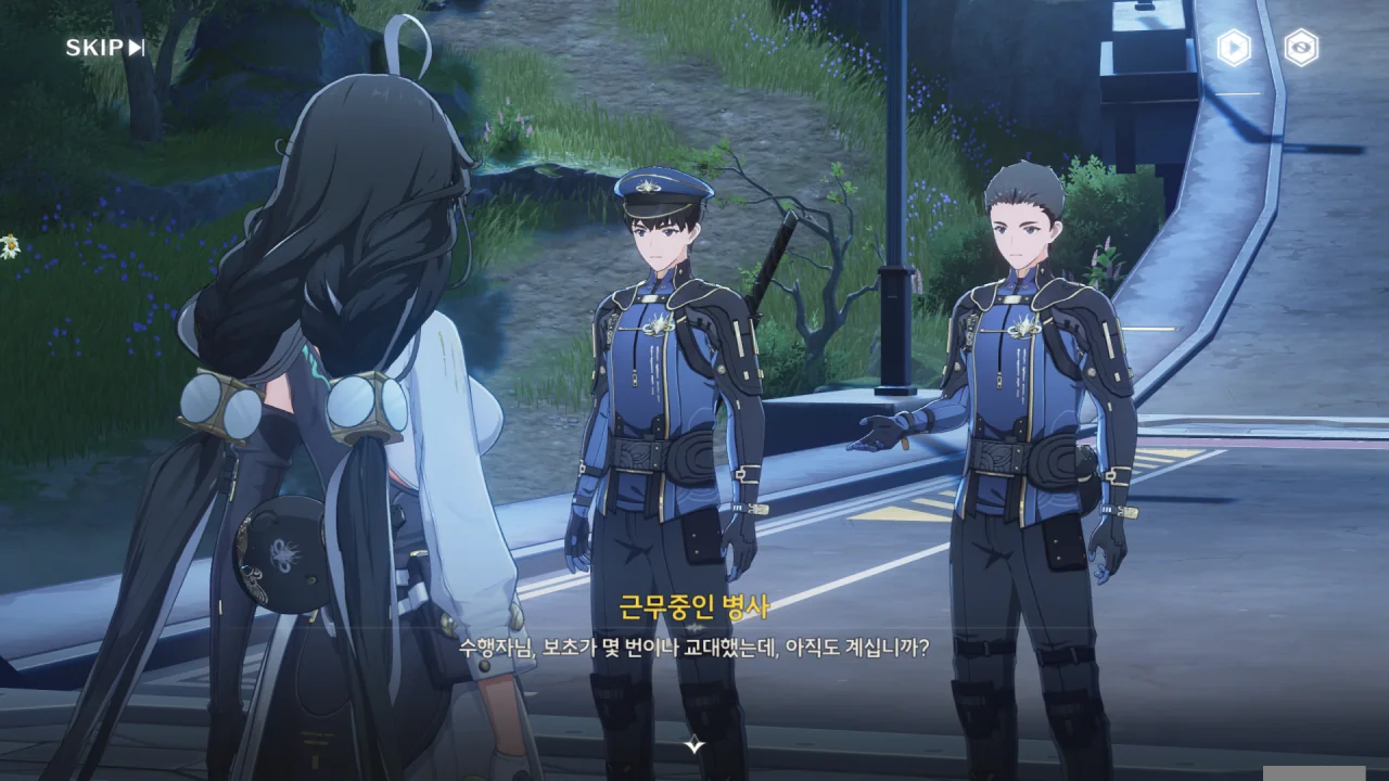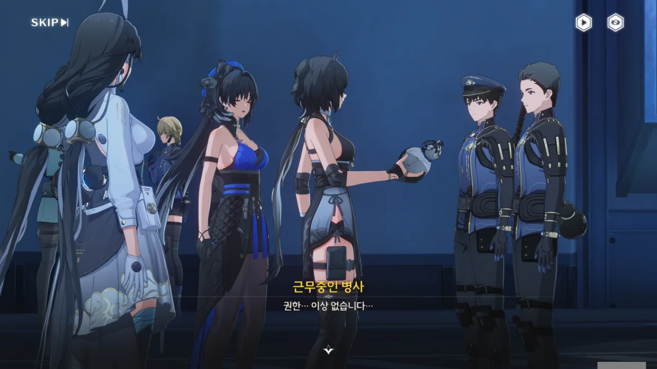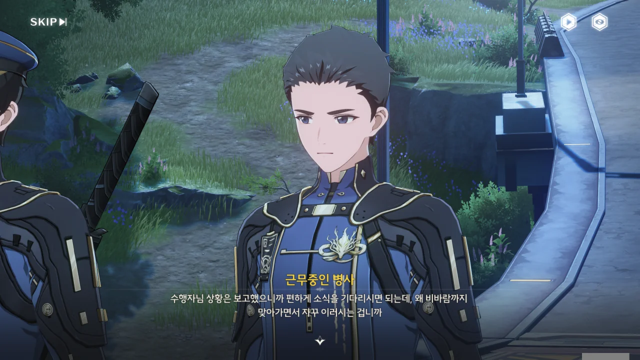 단말기를 내밀자, 떨떠름한 표정으로 권한에 이상이 없다고 말하는 병사.