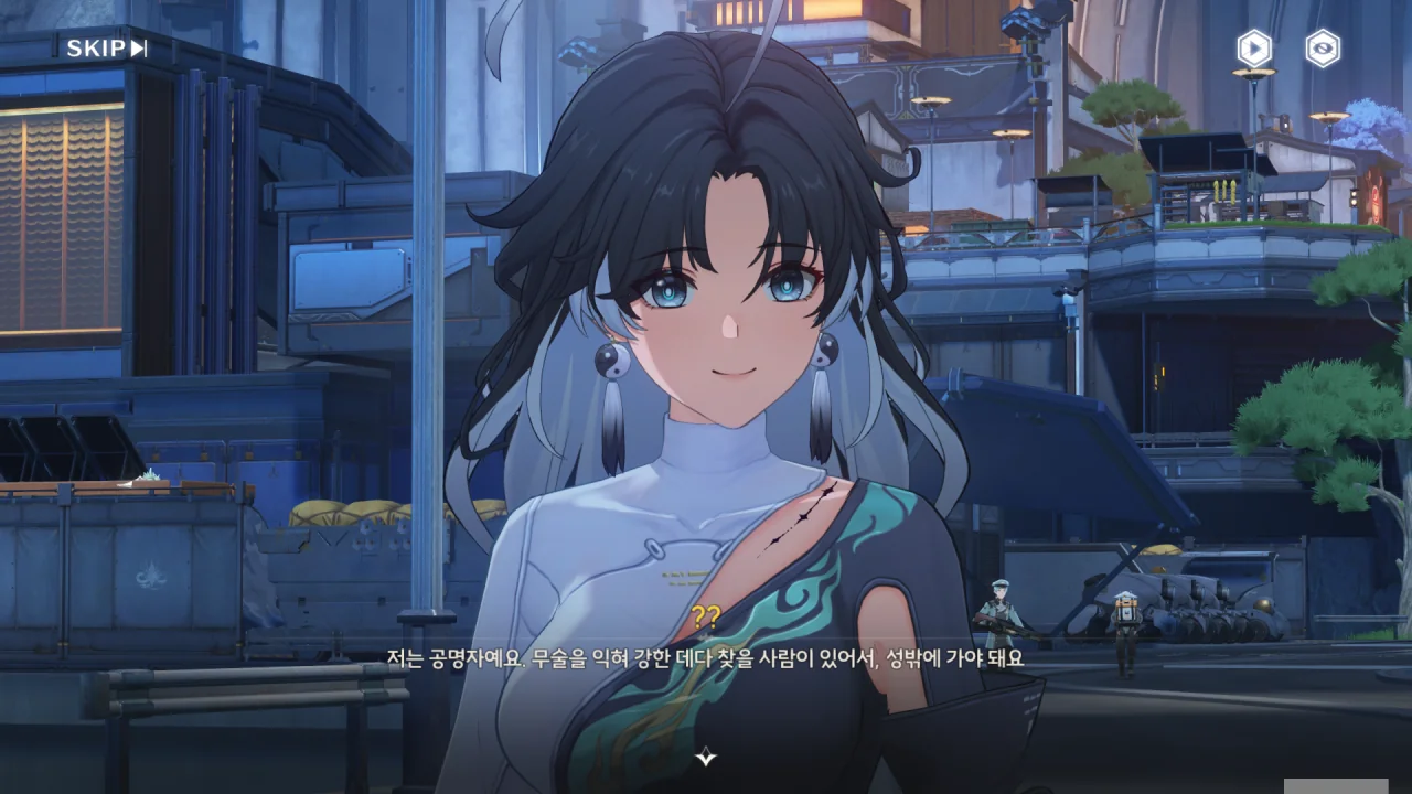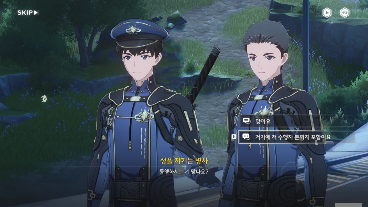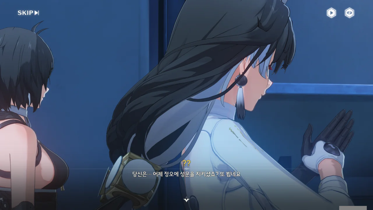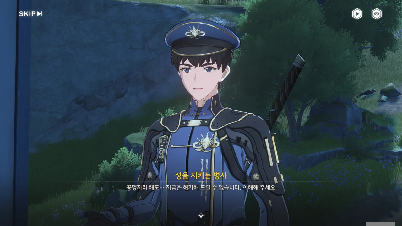 '어… 그거 난가?'라고 하는 듯 볼을 긁적이는 방랑자. 방랑자는 저번에 금희에게서 '금주에서 통행이 자유로운" 통행 권한을 얻었거든.