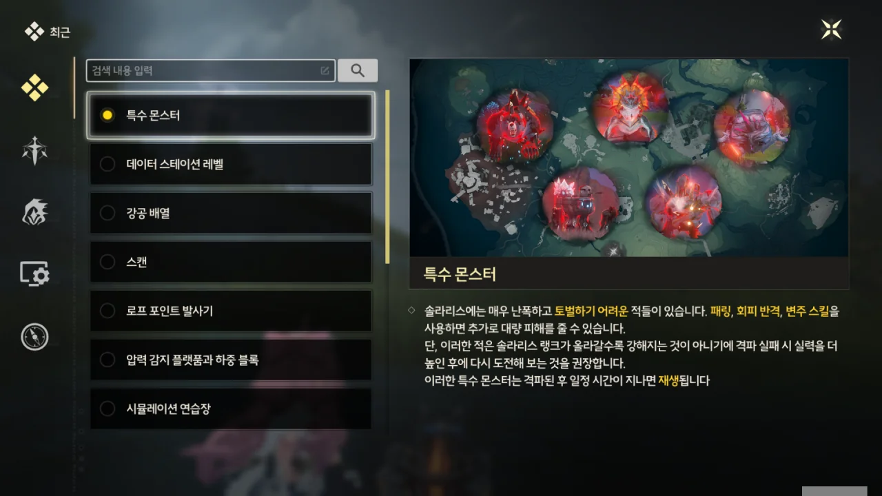 가던 중 만난 강적을 처리하자, 그 녀석이 '특수 몬스터'라고 말하는 튜토리얼이 나왔다. 레벨 고정 필드 보스인 것 같다.