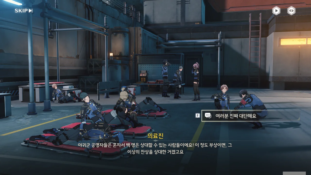 부상자들을 후방으로 호송해야 하는데, 공명자가 오버클럭을 일으킨 사건 때문에 일손이 부족해진 휴란이 도움을 요청한다. 못할 것 없지.