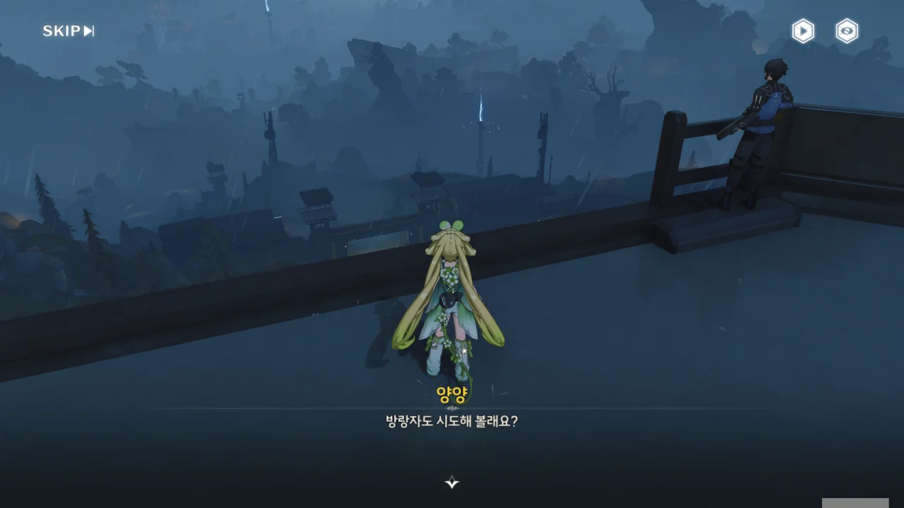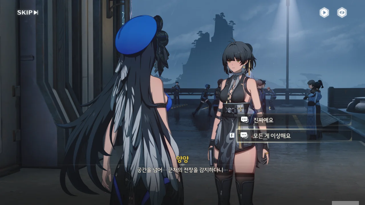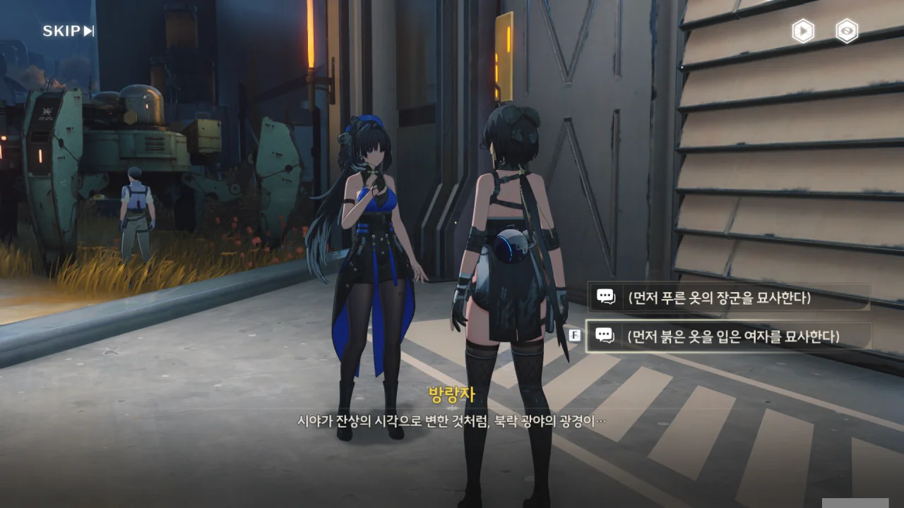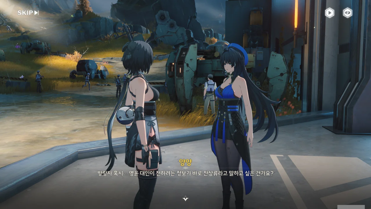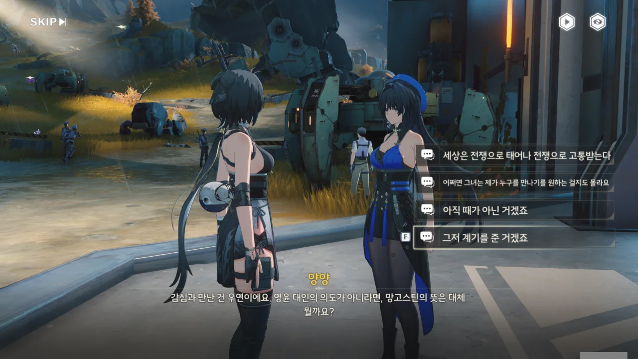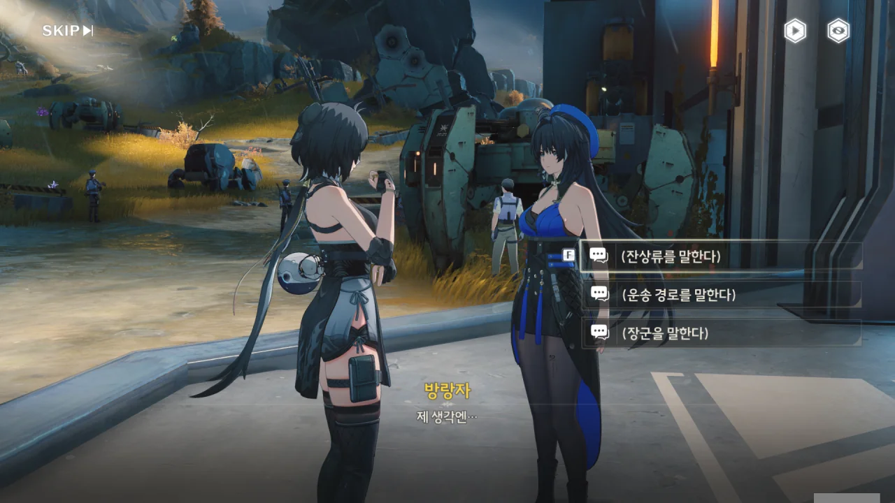 처음에는 방랑자 일행을 지원자로, 그다음에는 지원 대원으로 오해하는 휴란.