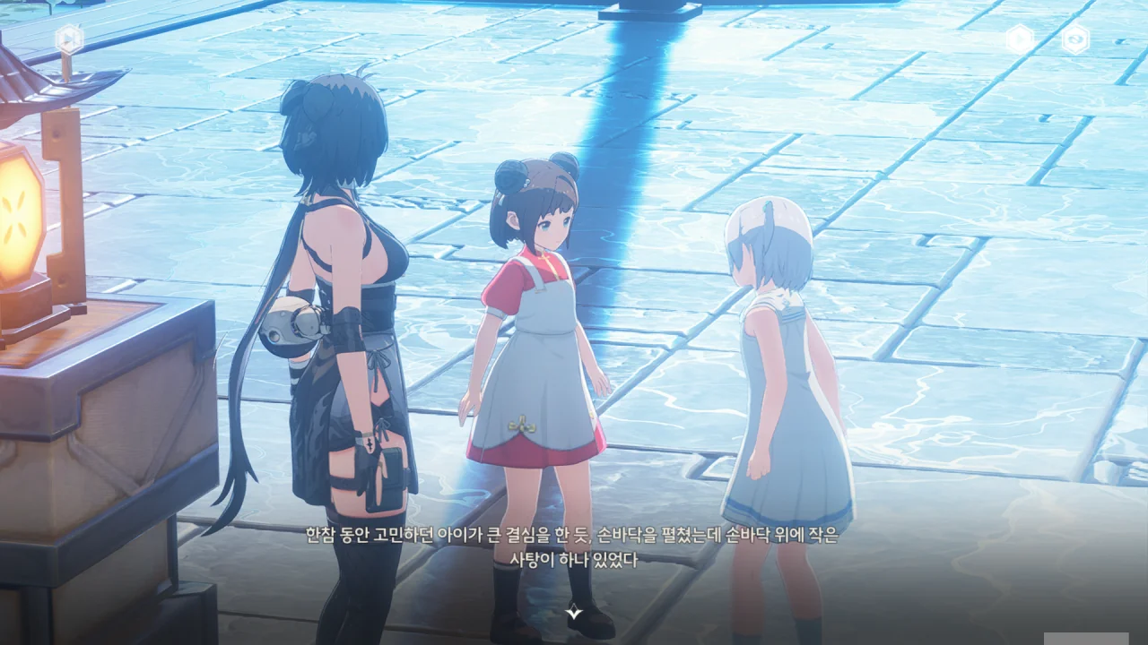 하지만 그 선택지를 고르자, 화면 왼쪽에 나오는 임무 설명에 선택 임무가 나오는 걸 보고, 주변의 아이들에게 사탕에 대해 먼저 물어봐야 했다는 걸 깨달았다.
