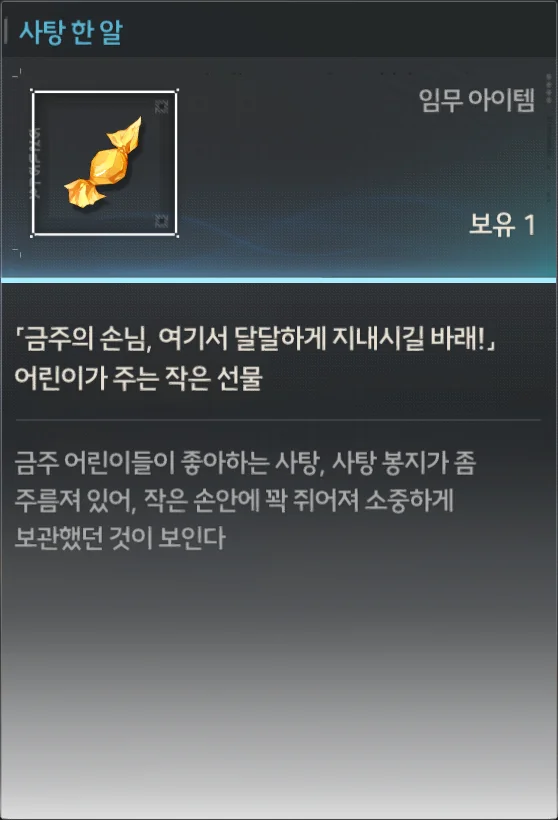 사용할 수 있는 소모성 아이템이지만, 이걸 홀랑 까먹기에는 뭔가 양심의 가책이 느껴진다.