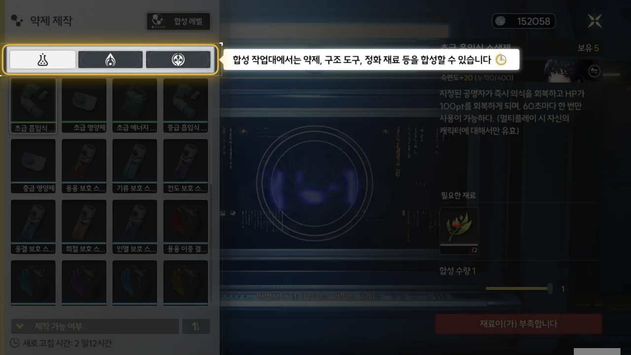 처음 봤을 땐 벽에 달린 모니터만 합성대인 줄 알았는데, 지금 다시 보니 양 옆의 출입구를 포함한 기계 전체가 합성대인 것으로 보인다.