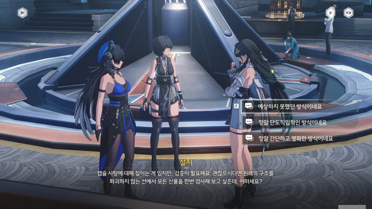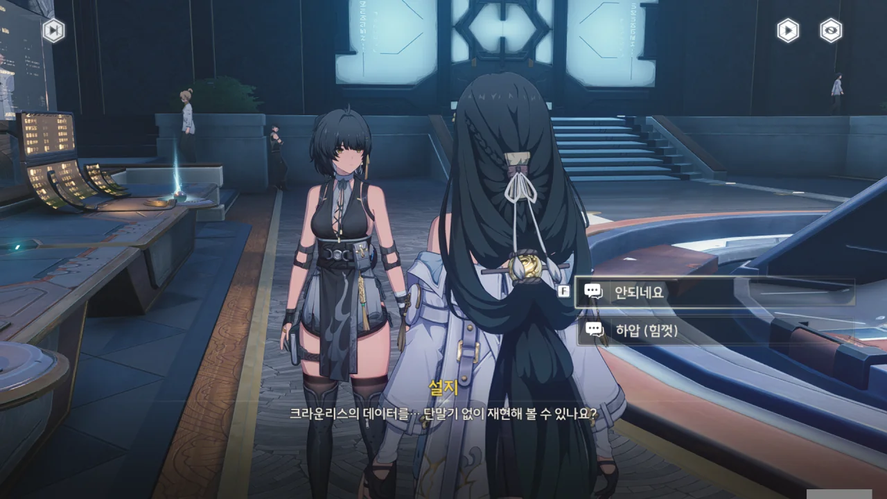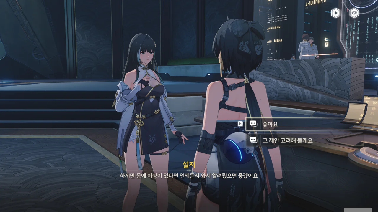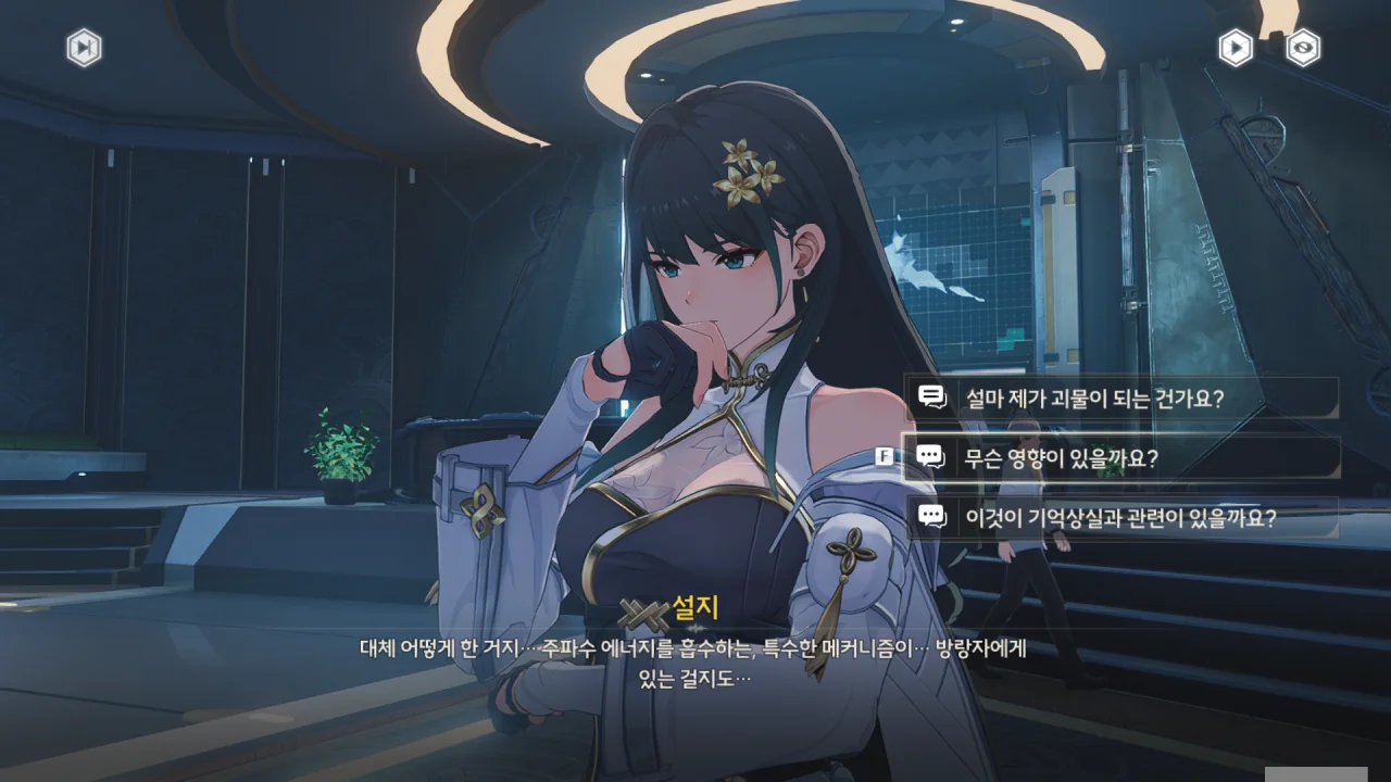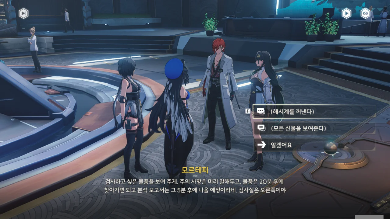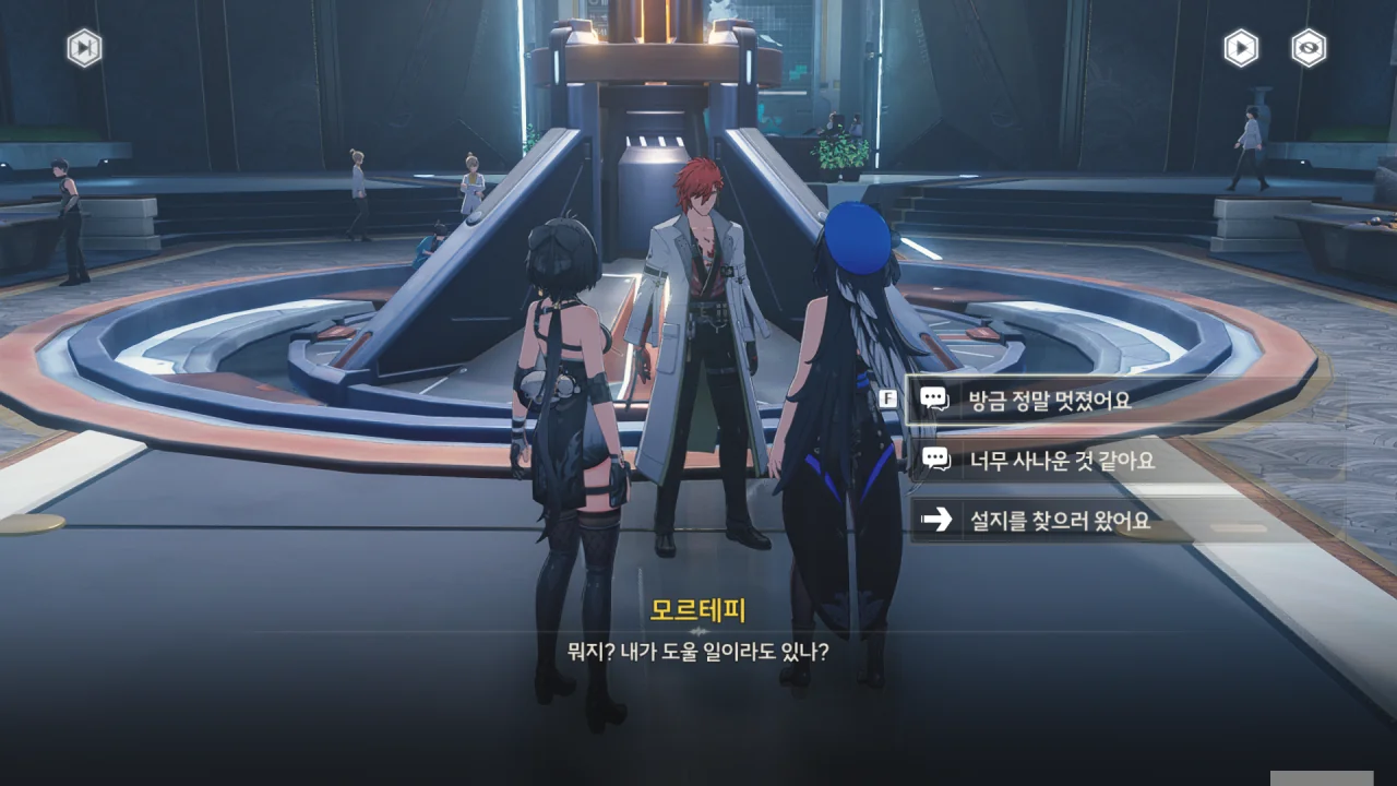 마침 눈앞에 있는, 설지와 연락이 닿을 거라는 안전과의 '모르테피'와 대화하기로 했다.