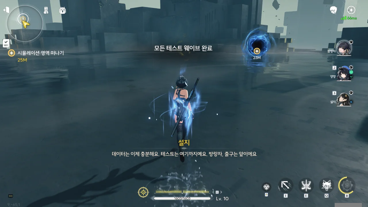 설지와의 통신이 끊어지고 화면에 보랏빛 얼룩이 생겼다. 임무 내용 역시 '시뮬레이션 영역 떠나기'에서 '..나#.가..# 세요.█.█...'로 변했다.